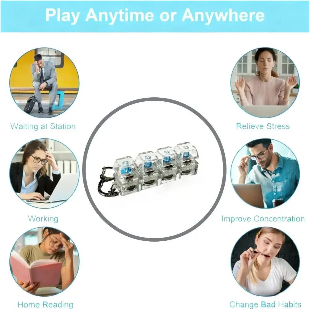 [April Fool's Day Gift] Glowing Keyboard Fidget Toy, 4-In-1 Decompression Button Keychain, transparent toy mechanical keyboard Stress-relieving Finger Clicker, pendant crystal keycaps with Flashing LED lights