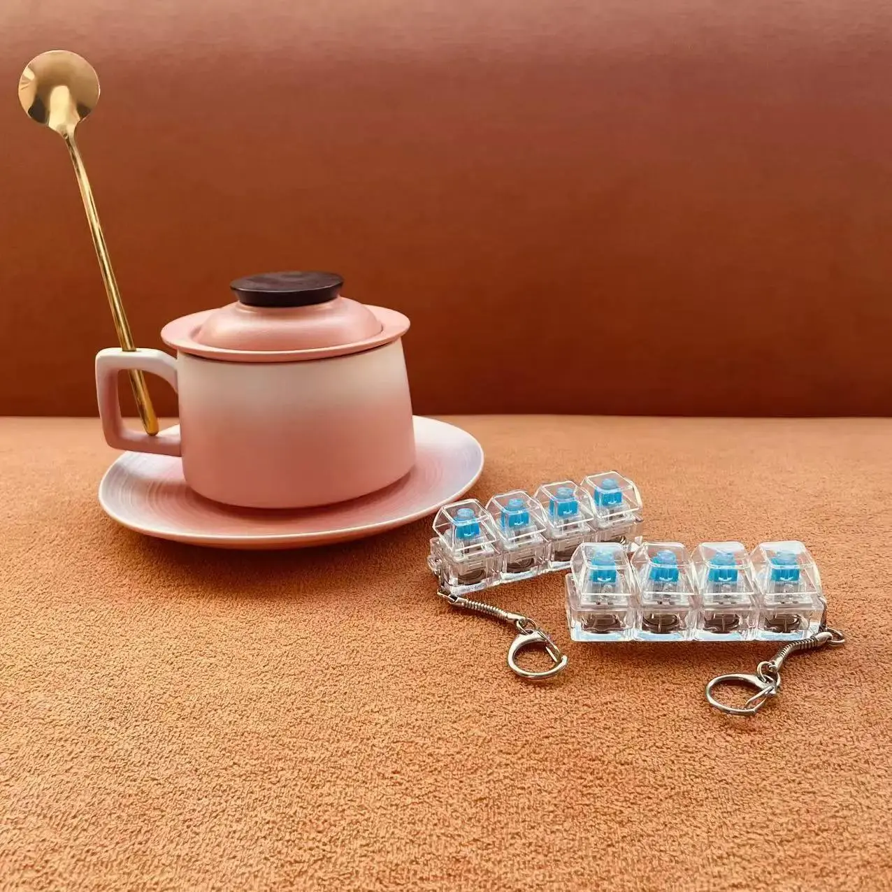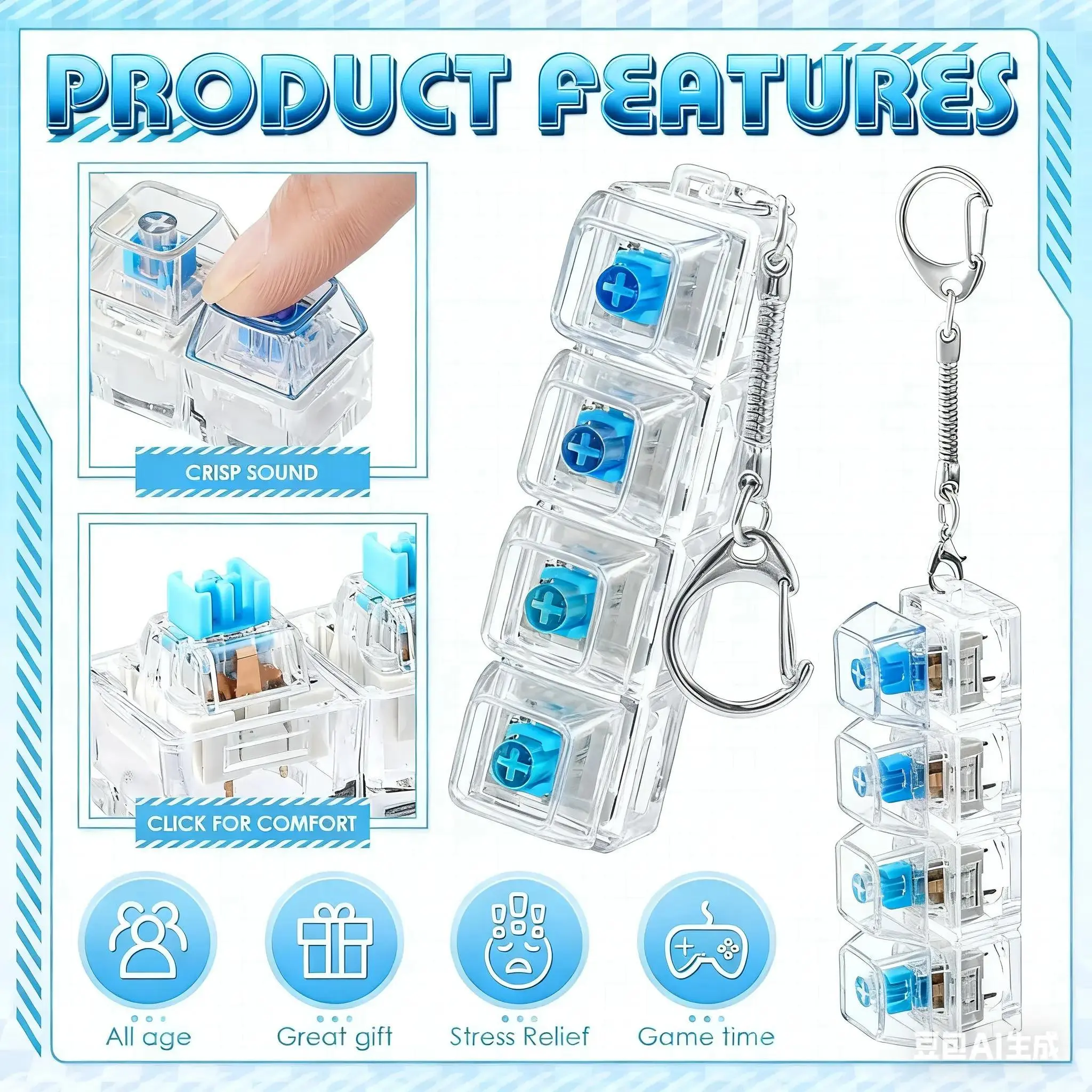 [Transparent design: Adds a sleek, modern look to your keyboard., Flashing LED lights: Provides a dynamic and engaging visual experience., Fidget-friendly: Perfect for those who enjoy tactile stimulation., Mechanical keyboard keychain: Easy to attach and carry around.]