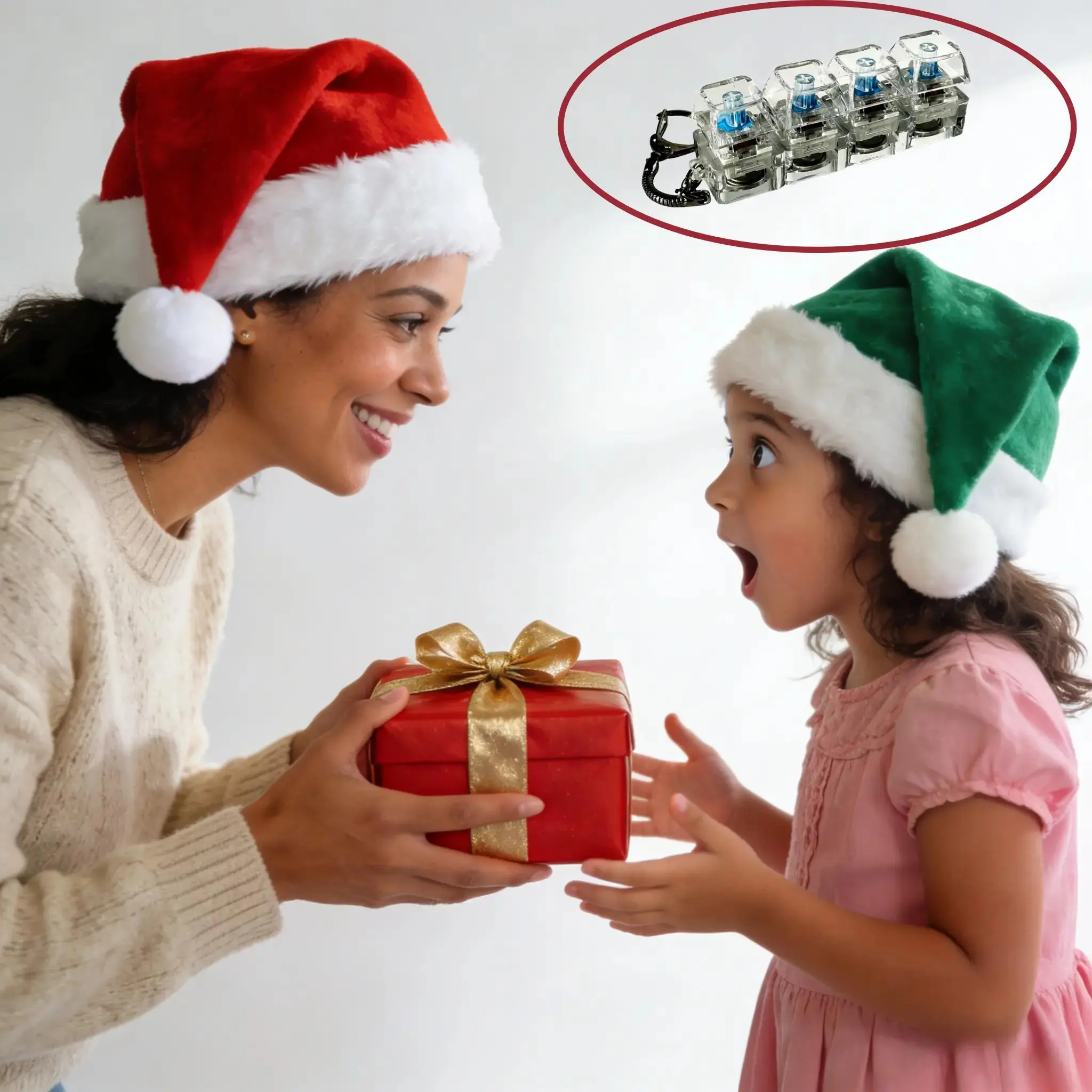 ✨ Four keycaps designed as a stress-relieving transparent toy. Perfect for adding a fun pendant to your mechanical keyboard. These crystal keycaps come with flashing LED lights, enhancing the visual appeal. Ideal for satisfying fidgets, these keychains are a delightful addition to your setup.