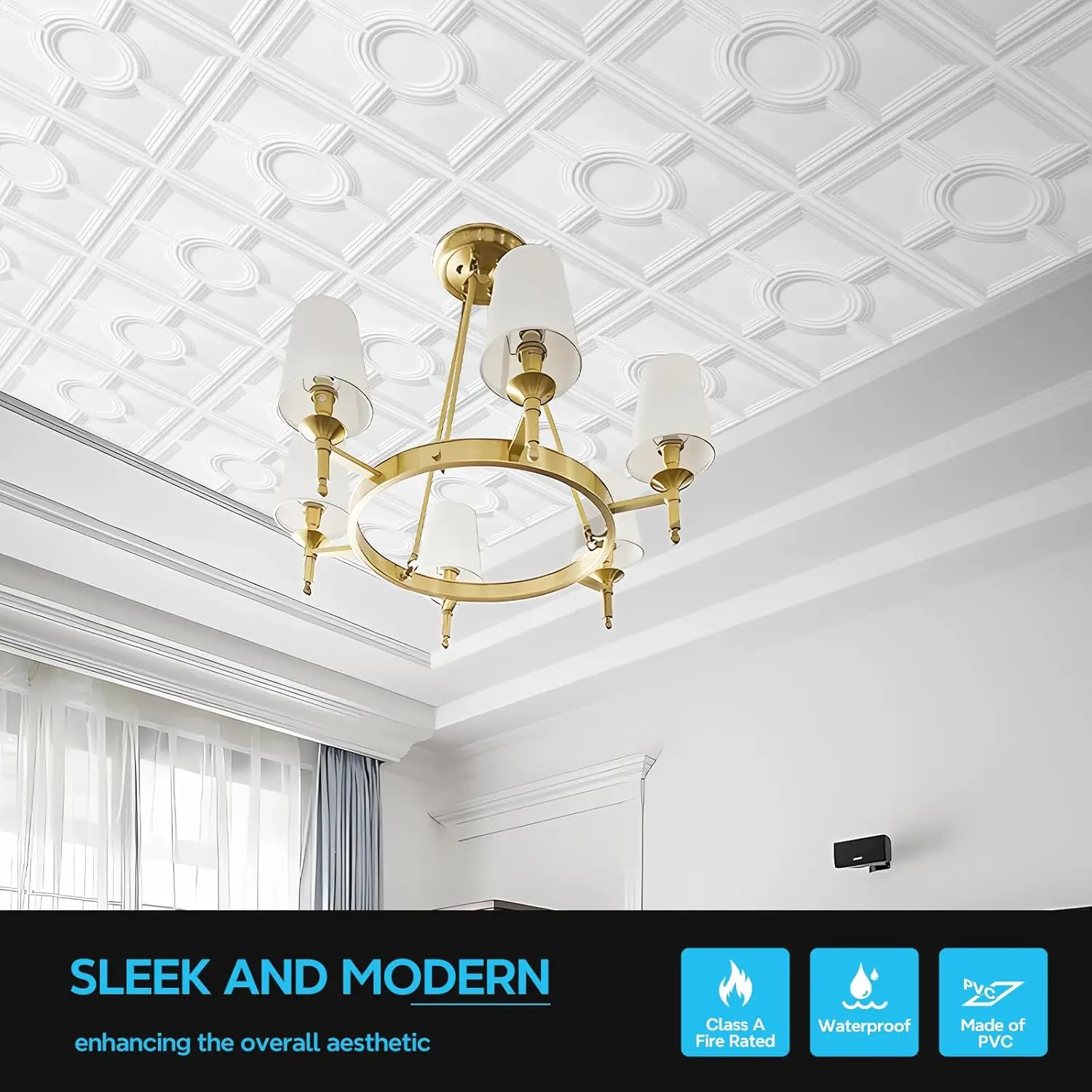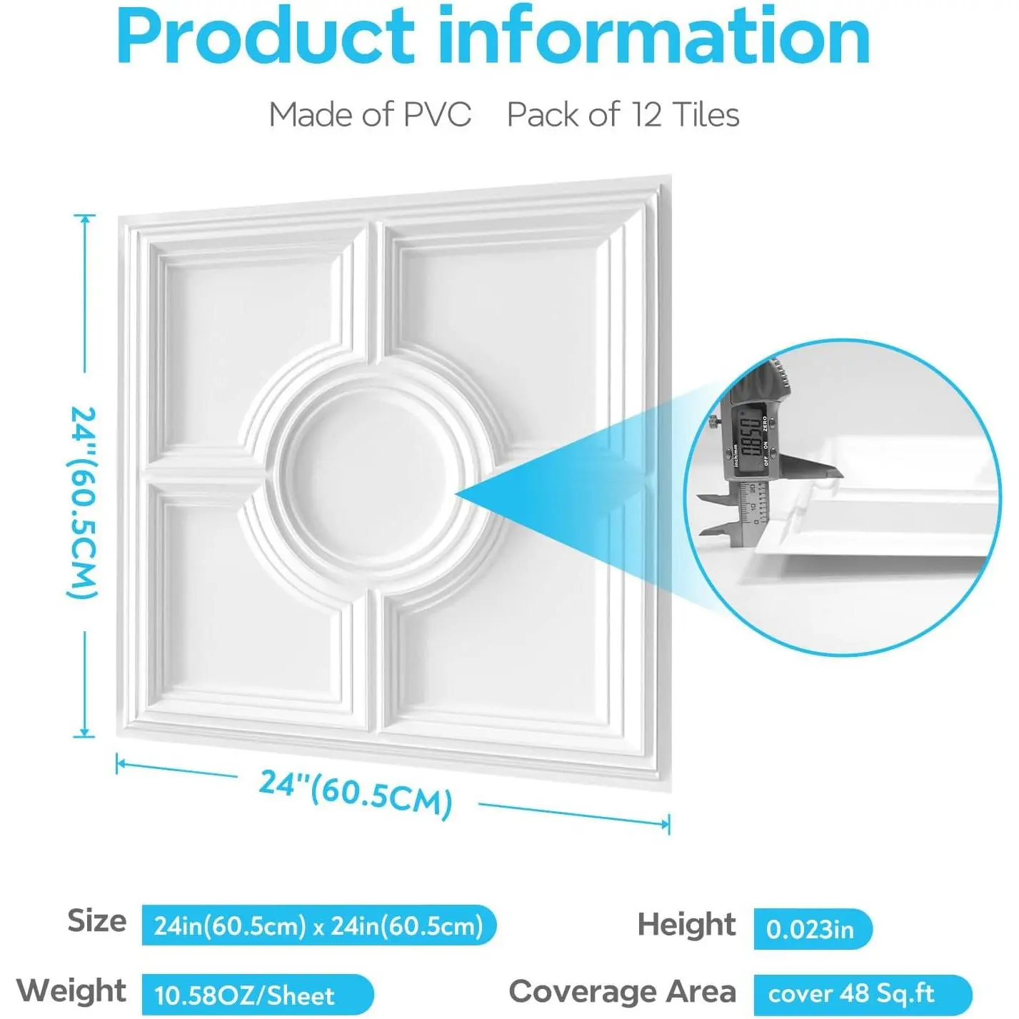 Premium Material: Crafted from high-quality, recycable PVC material, features lightweight and flexibility, waterproofing, allowing for convenient maintenance.Resistant to cracking, fading, or warping over time, ensuring a long-lasting ceiling panels.Easy Installation:STICKGOO Drop Ceiling Tiles are compatible with 15/16" T-bar grid system or glued over any flat substrateseasy to cut with utility knife or scissors for light fixture or any less than full-size grid spacesMultipurpose: These elegant stylish 3D designs are excellent no matter for remodeling or new construction to ceiling or wall decoration.Also a great choice to accent featured wall design.Package Specification: A single package contains 12 ceiling tiles, each measures 24x24 inches, total covering 48 sq.ft.Carefully packed with 4 edges protectors to prevent breakage and bending, ensuring flawless condition upon arrivalVersatile Application: Drop ceiling tiles can be used in commercial settings such as offices, retail stores, and restaurants, fitting room enhancing the overall aestheticAs well as in residential renovations, like apartments, basements, home theaters, and bedrooms
