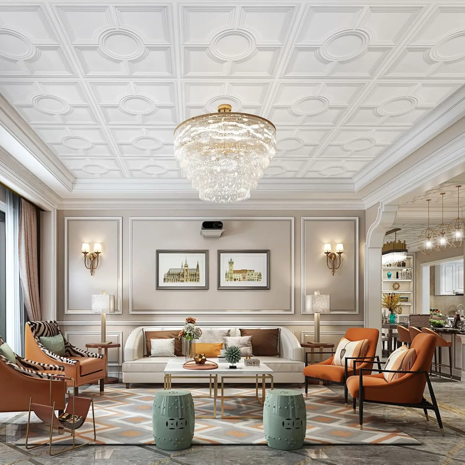 Not only for ceiling tiles, using the 3d panels wall decor as a backdrop for your living room, editing bay, videogame lounge, bedroom, kitchen, office etc. to elevate your residential or commercial interior space. Feature wall would add flair to your home décor.