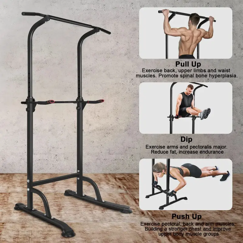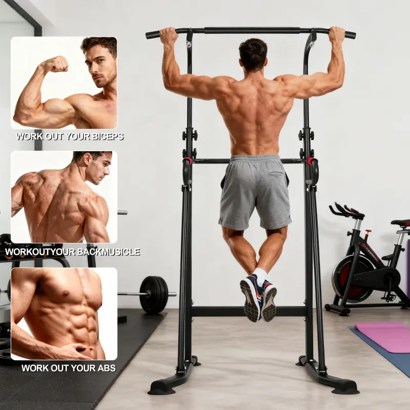 This home gym-specific strength training tower combines a pull-up bar and a double-bar pull-up device into one unit. It is a heavy-duty, multi-functional fitness equipment designed for home strength training and full-body workouts. It does not require a lot of space and can meet the fitness needs of different groups of people, combining professionalism and convenience. Whether you are a beginner or an advanced fitness enthusiast, you can easily achieve home-based strength training