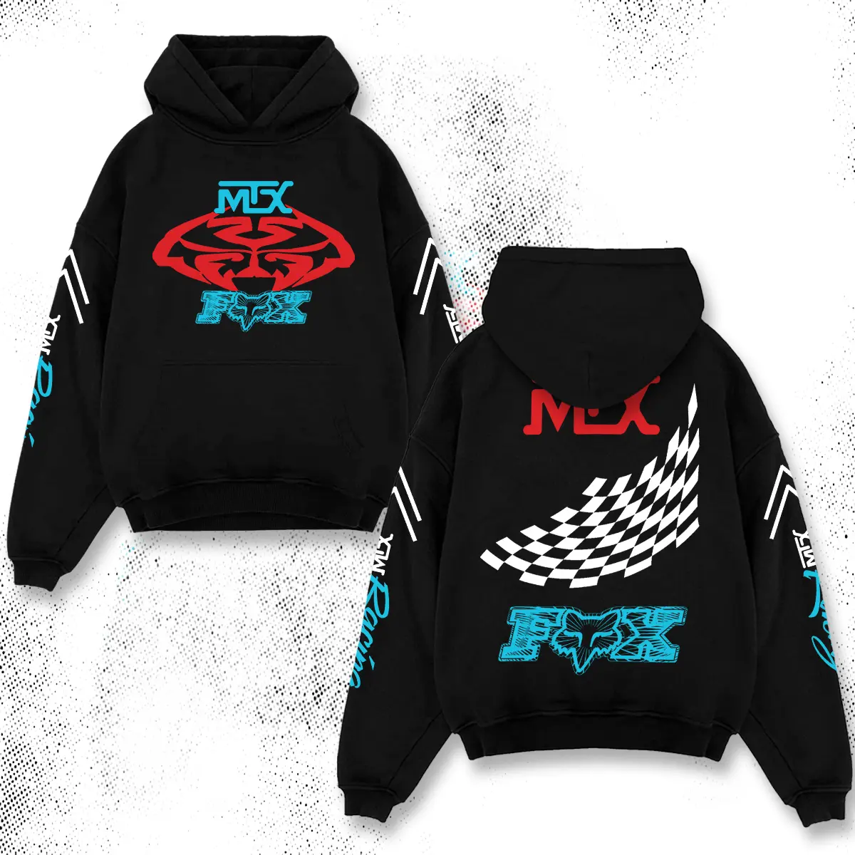 Retro Fox MTX Racing Men's Hoodie Cotton, Motor World Championship Enthusiast, Apparel Streetwear Racing Team, Motocross Motobike Riders Supermotor MotoGear Clothing, Off-Road For Dirt Bike Fan
