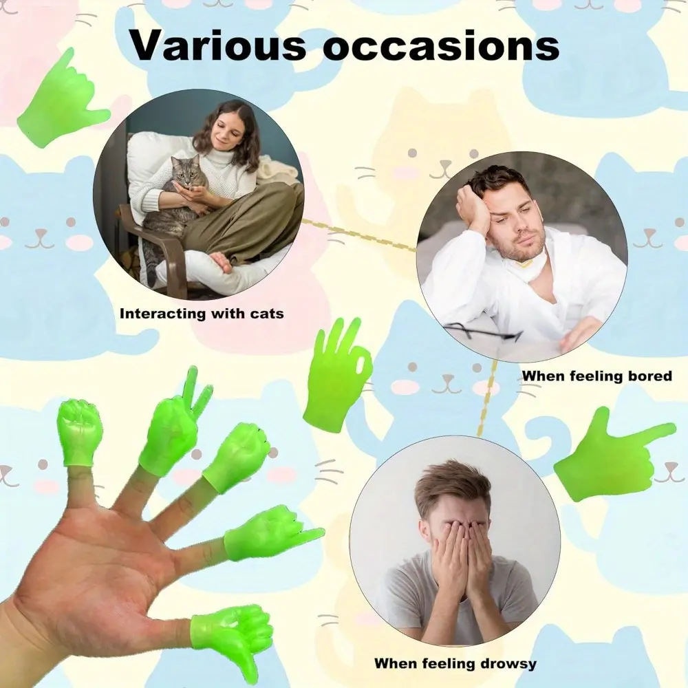 10-Pack Glow-in-the-Dark Green Mini Hand Puppets – Authentic Rubber Finger Puppets, Perfect for Cat Shows, Puppet Shows & Creative Games. Portable & Durable, Ideal for Indoor Use