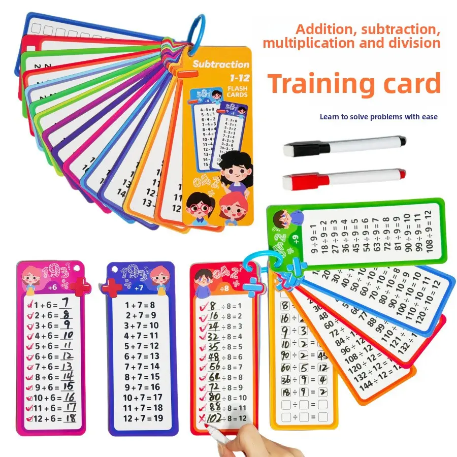 Addition, subtraction, multiplication, and division elementary school math arithmetic cards, erasable children's learning teaching aids, calculation training cards