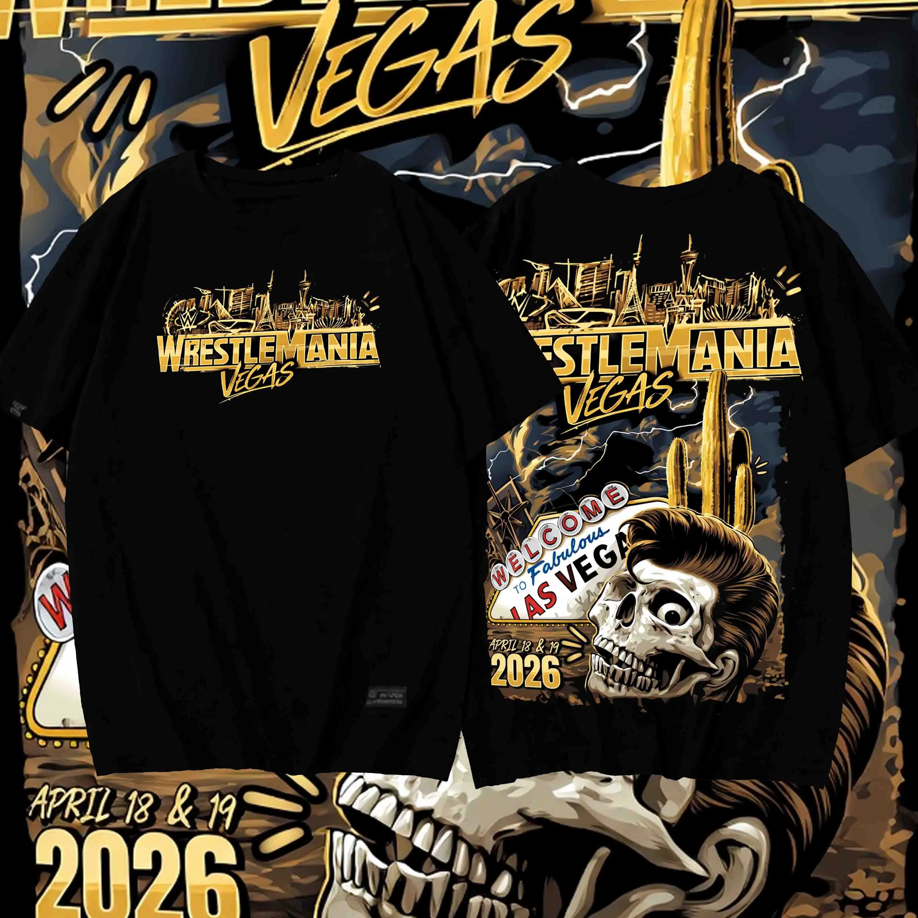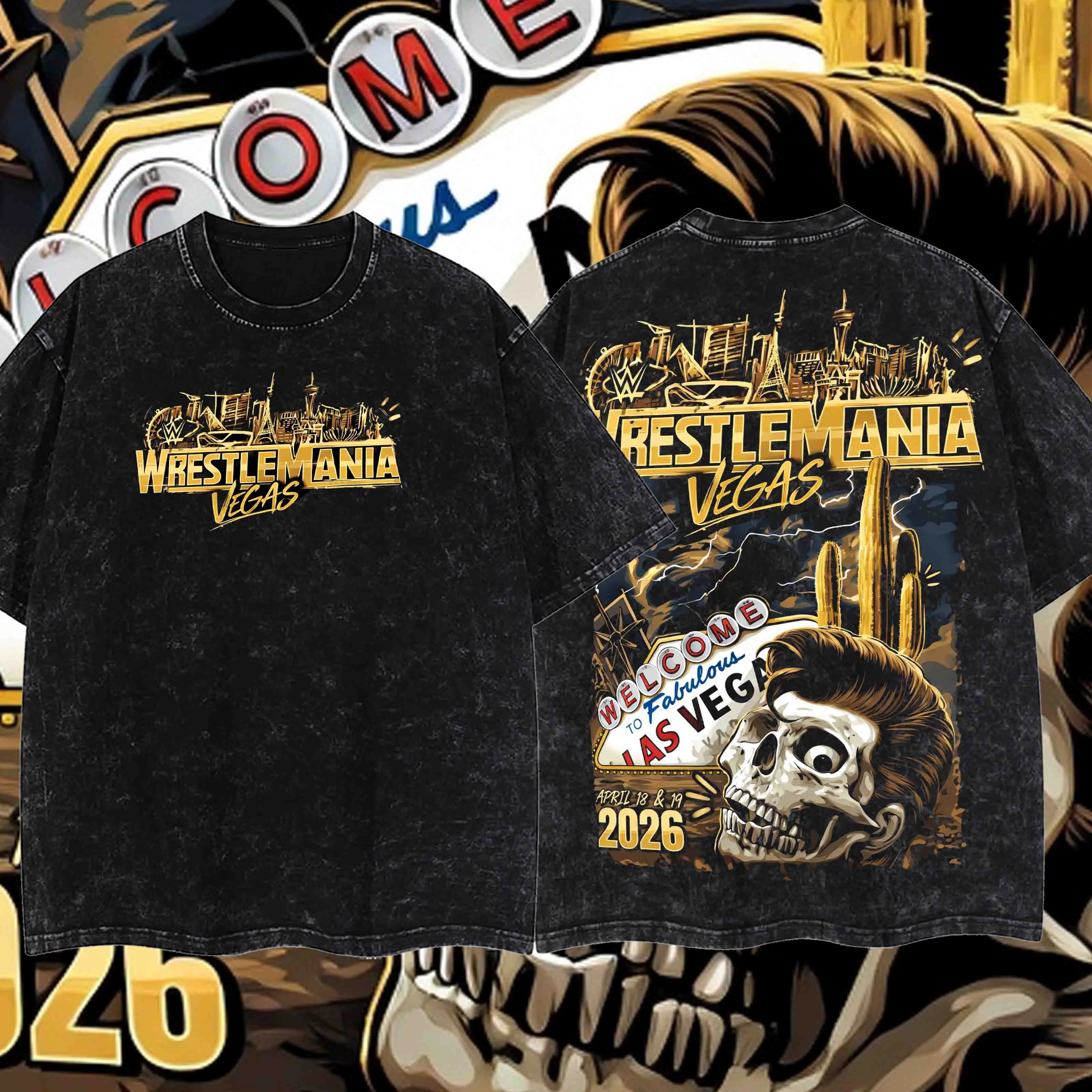 WrestleMania 42 Vegas 2026 Heavy Washed T-Shirt Welcome to Fabulous Las Vegas – Skull Design Oversized Tee #WrestleMania #WrestleMania42 #Vegas2026