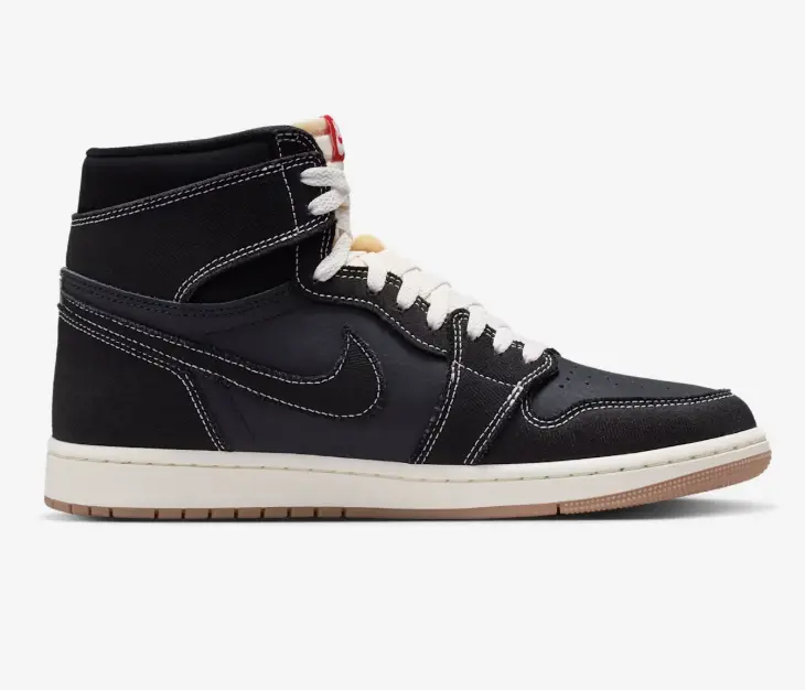 The Air Jordan 1 High OG 'Flight Club' pays homage to Jordan Brand's mail-in membership program, which operated from the late '80s to the early '90s. The blacked-out upper, crafted from leather with woven textile overlays, features white contrast stitching and a crimson Wings logo on the lateral ankle. A red Nike Air tag adorns the exposed-foam Sail-colored tongue. The high-top is mounted on a vintage off-white midsole, supported underfoot by a gum rubber outsole.