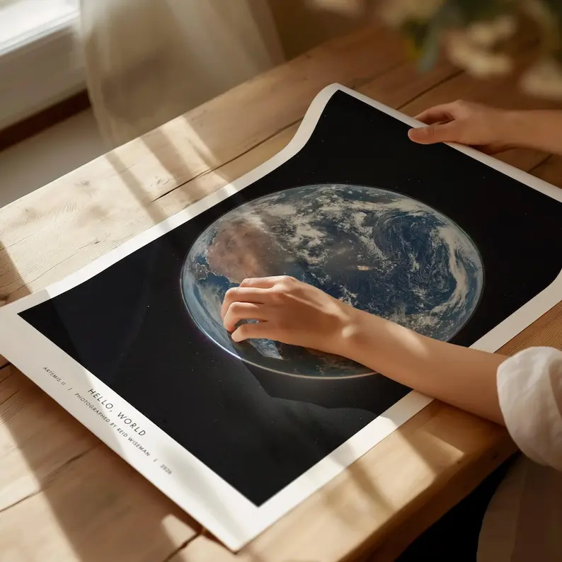 Hello World NASA Poster, Artemis II Earth Photo Blue Marble Print, Reid Wiseman Space Art, NASA Gift, Planet Earth Poster