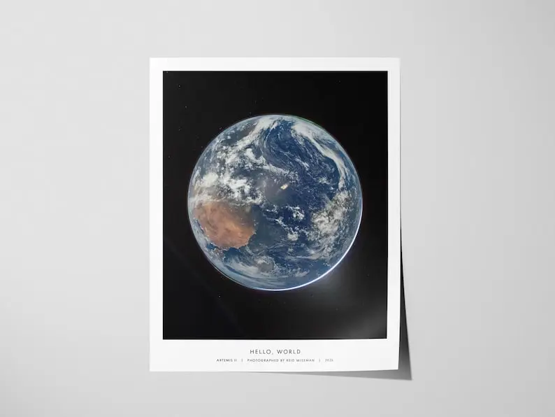 5. Hello World NASA Poster, Artemis II Earth Photo Blue Marble Print, Reid Wiseman Space Art, NASA Gift, Planet Earth Poster