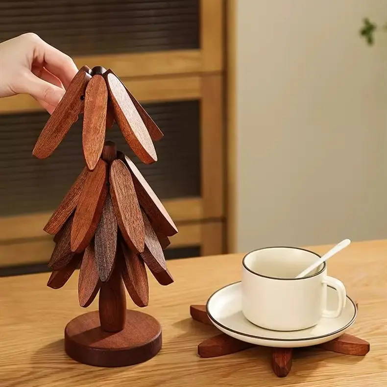 【Tree Shape Trivet Set 】 for hot dishes is made of wood and consists of 4 pieces of + 1 bracket to Prevents damage to countertops and table tops