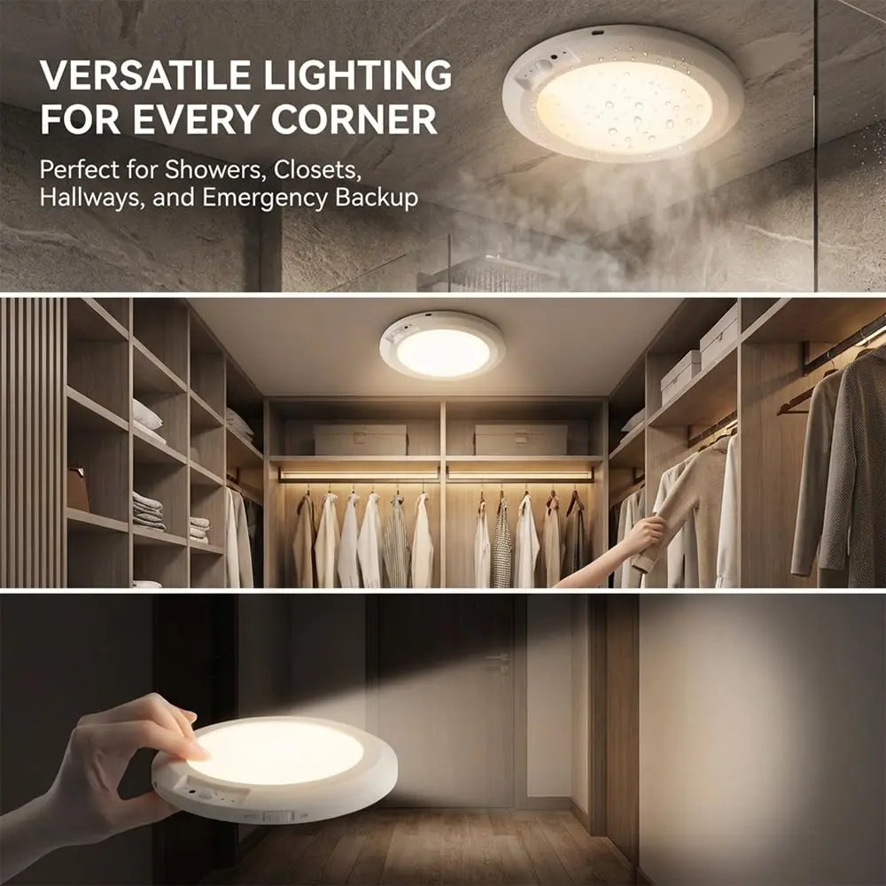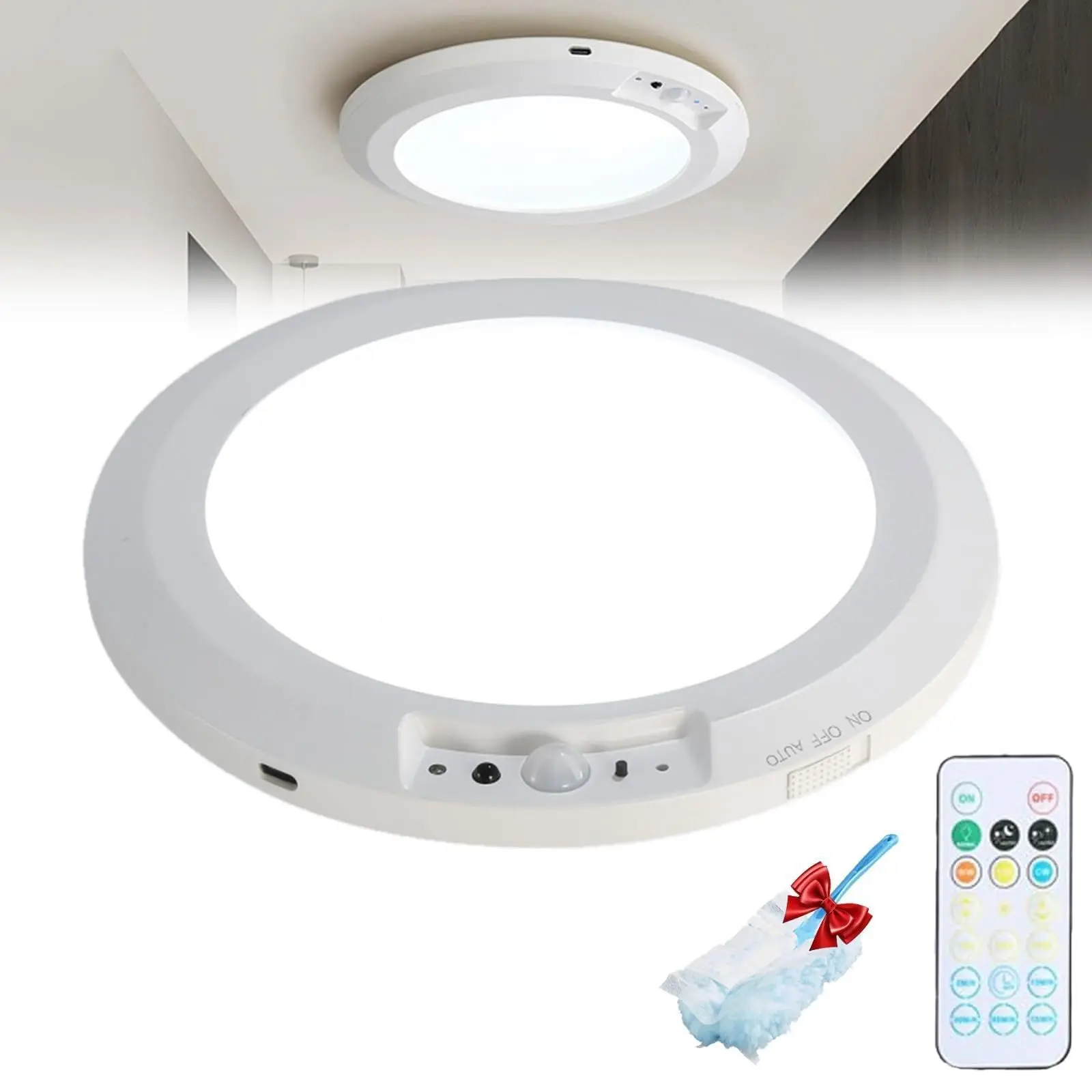 Rechargeable Wireless LED Motion Sensor Ceiling Light with Remote, Magnetic Dimmable 3-Color Battery Operated Lights, 7.48in Ultra-Long 60-Day Life for Closet Shower Hallway Stairs