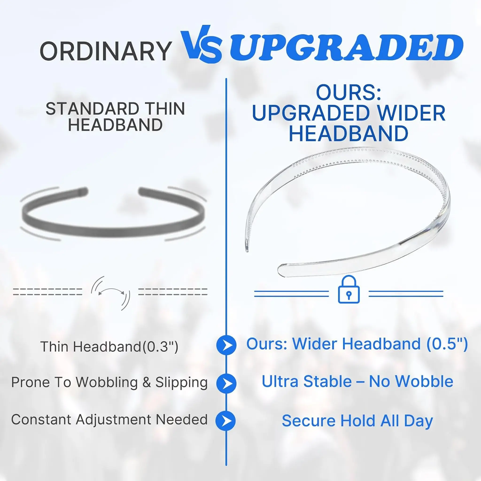 ·Patented Design for Graduates: Sold in 1 pc. This clear graduation cap headband is a great blend of style and function. Exclusively Patented (Patent No: D1096081), designed for graduates, students, and women, celebrate your big day in comfort.