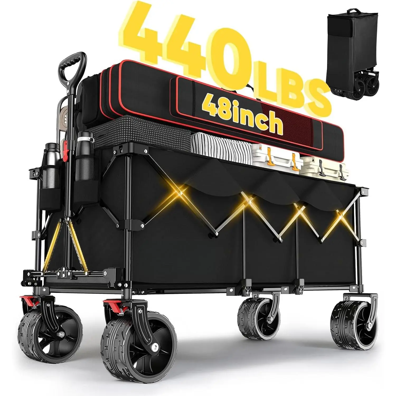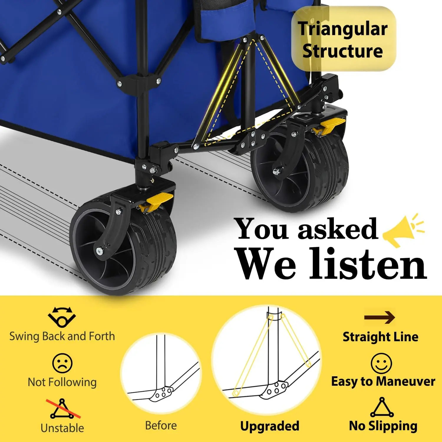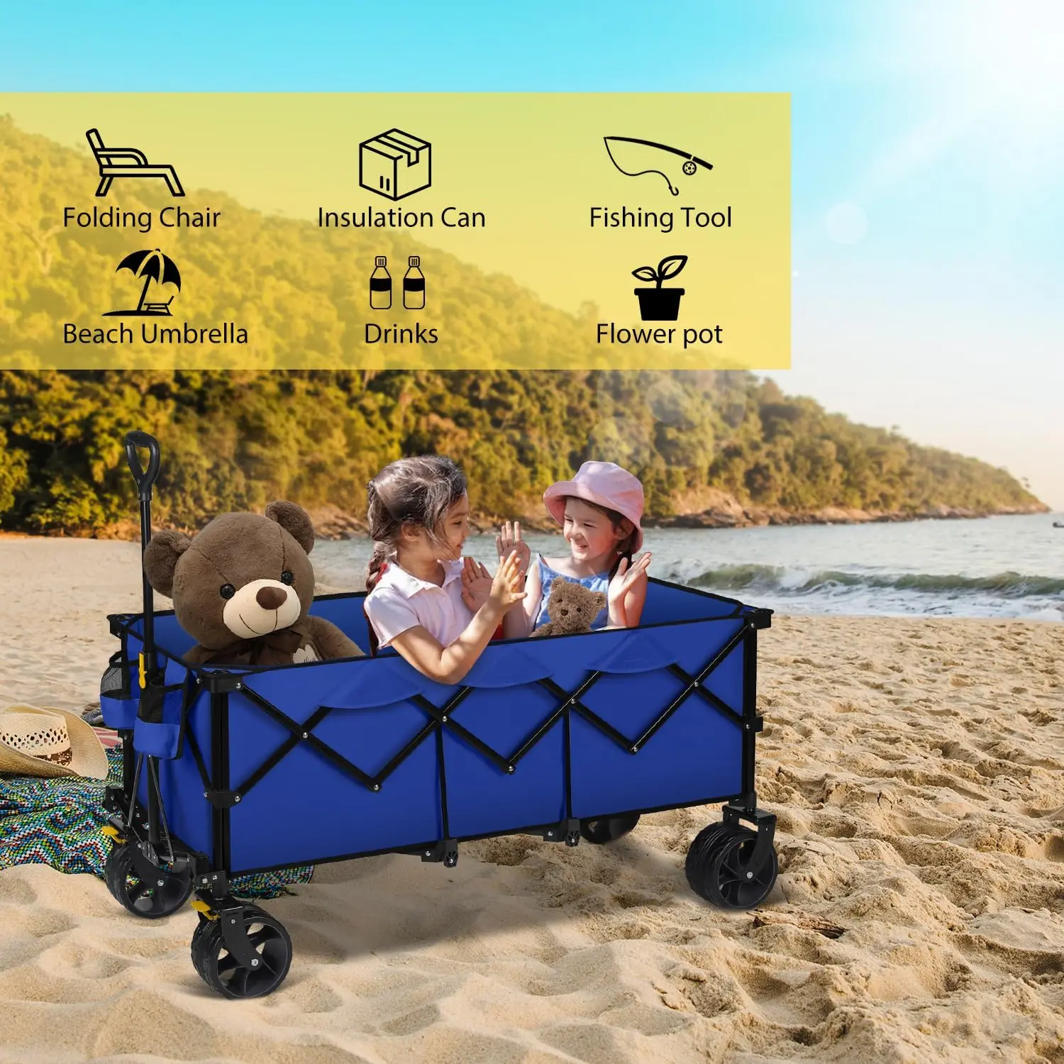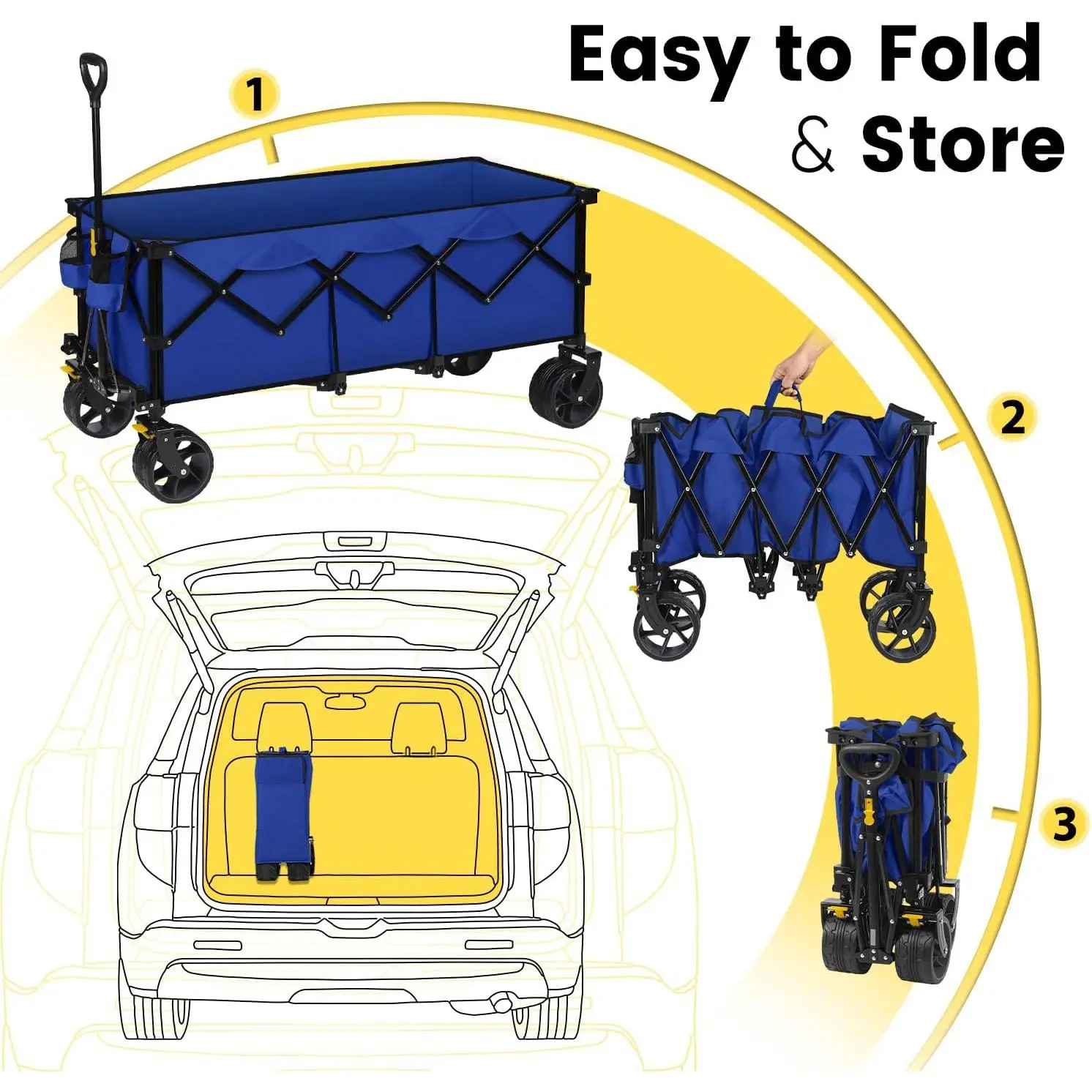 Extended Collapsible Foldable Wagon with 660lbs Weight Capacity, Heavy Duty Folding Utility Garden Cart with Big All-Terrain Beach Wheels & Drink Holders. Royal Blue