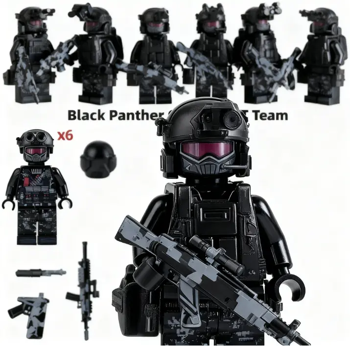 12 PCS Military Building Blocks Set Black Panther SWAT & Ghost SWAT Team Special Forces Ghost Mini Figure Pack Small Bricks STEM Toy for Kids