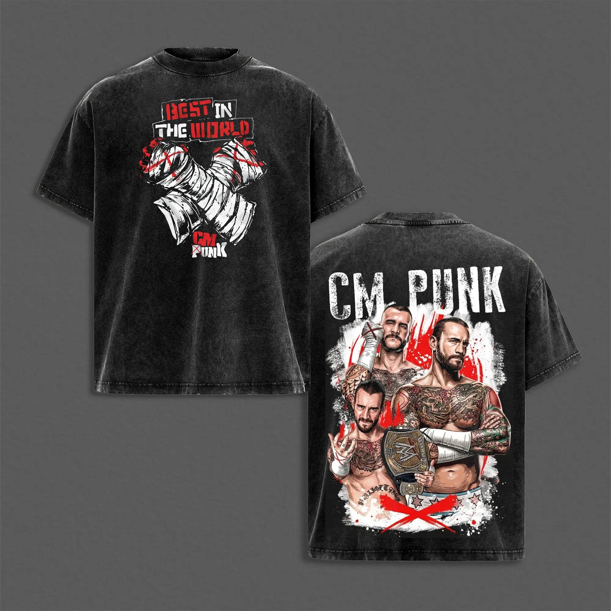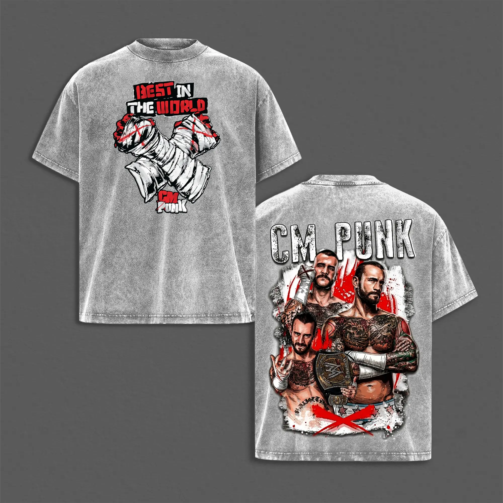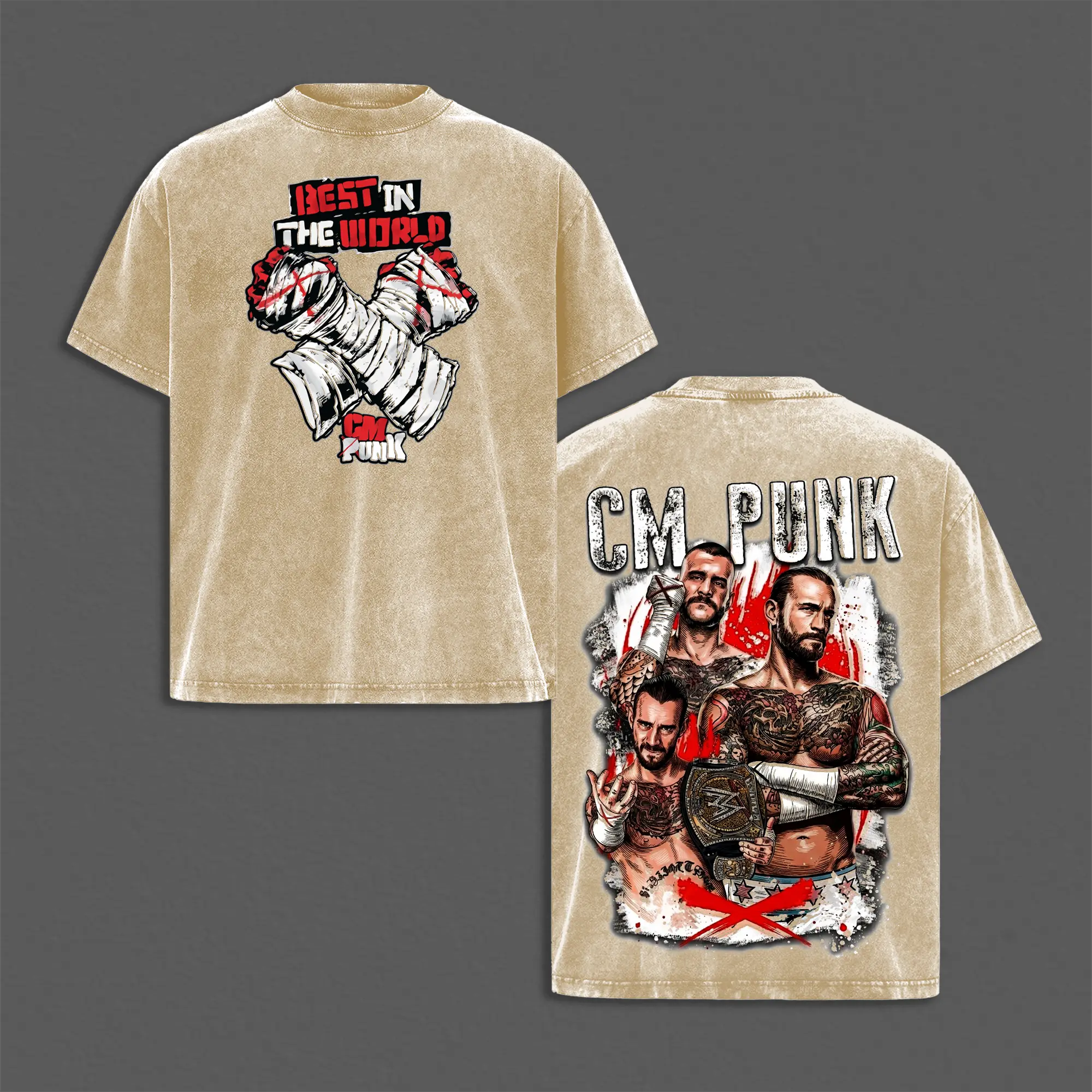 WrestleMania 2026 CM Punk Inspired Las Vegas Washed T-Shirt, Wrestling Match Card Washed Graphic Tee, Double Sided Heavy Cotton Shirt, Event Streetwear Fan Apparel Gift For Him, Her