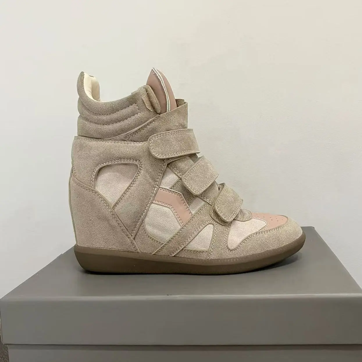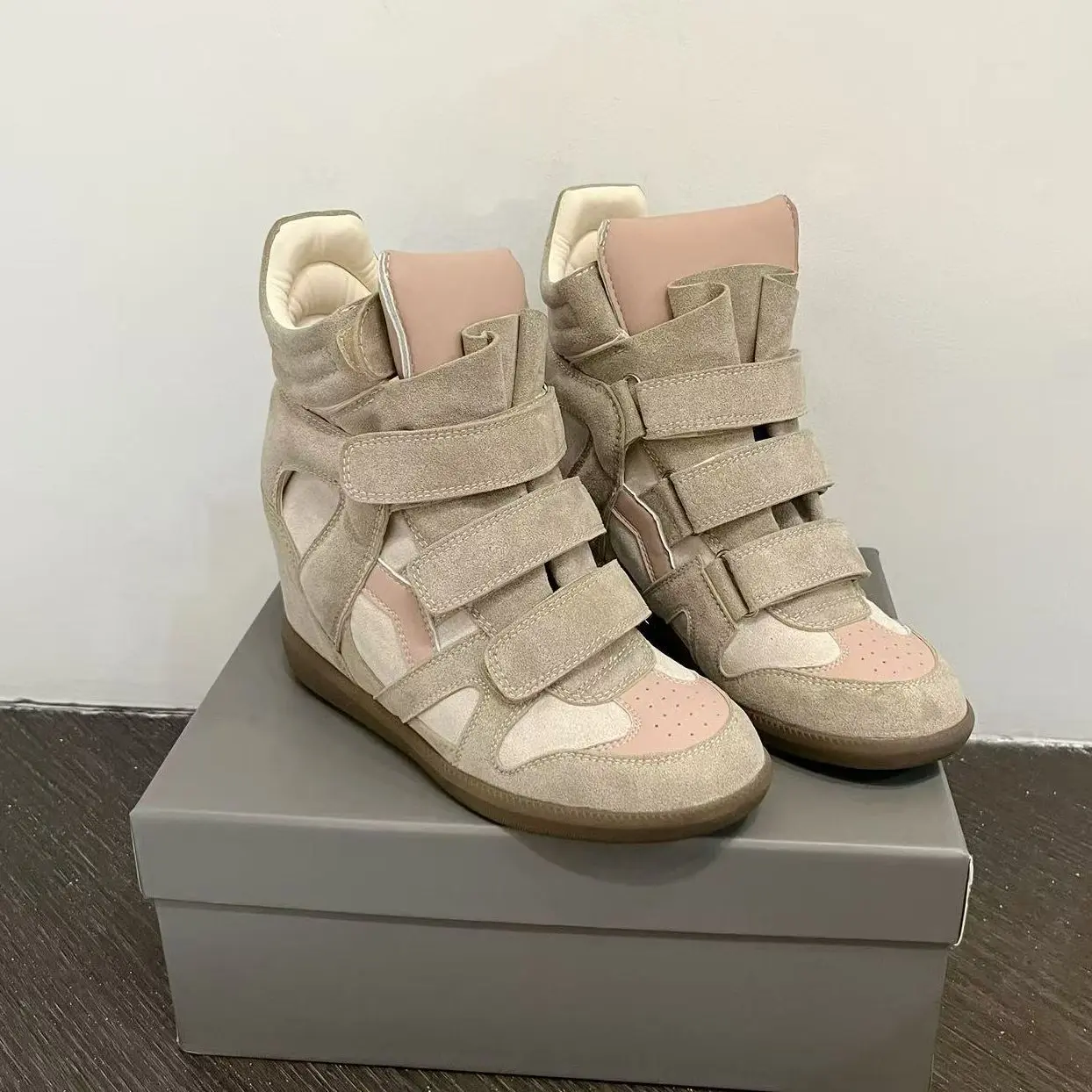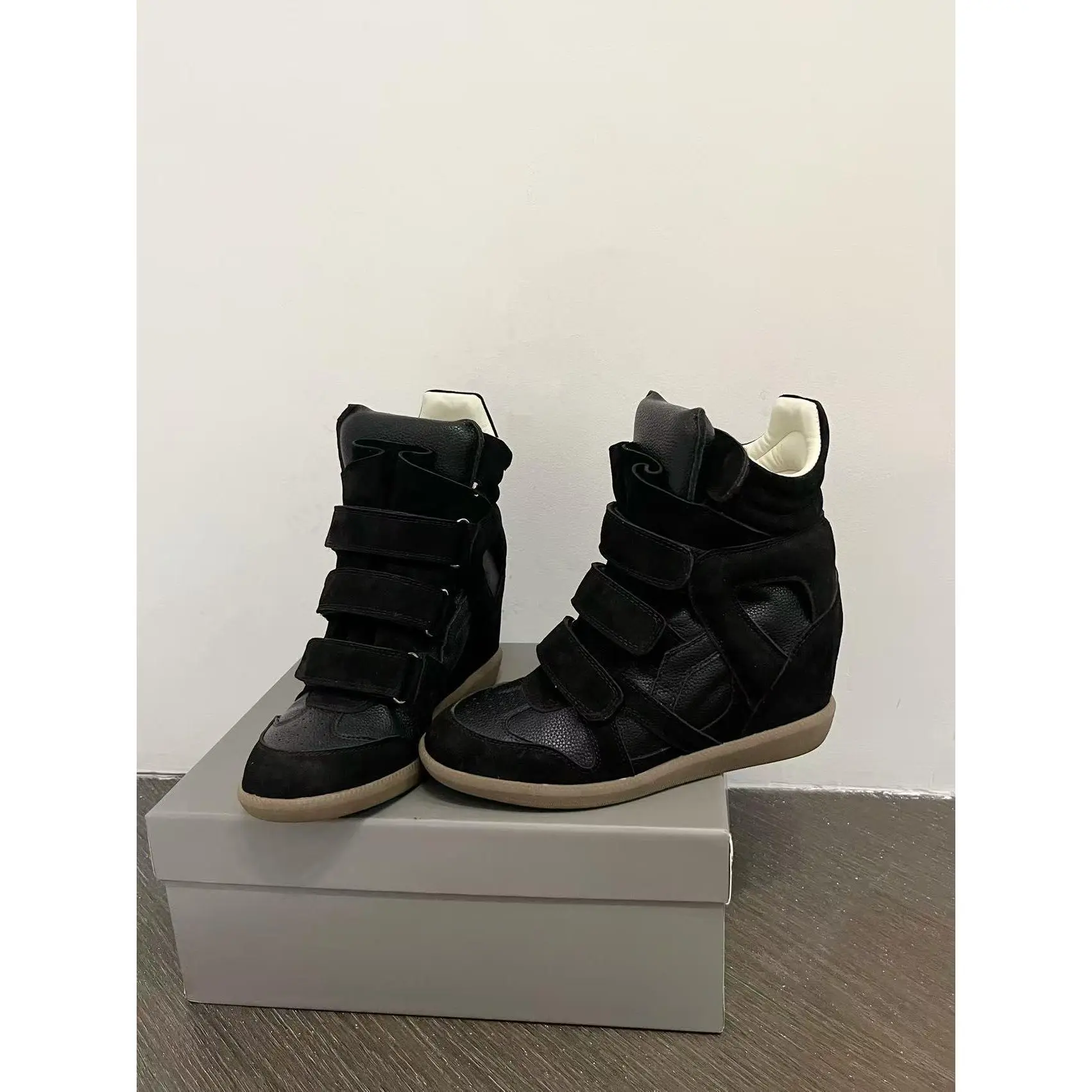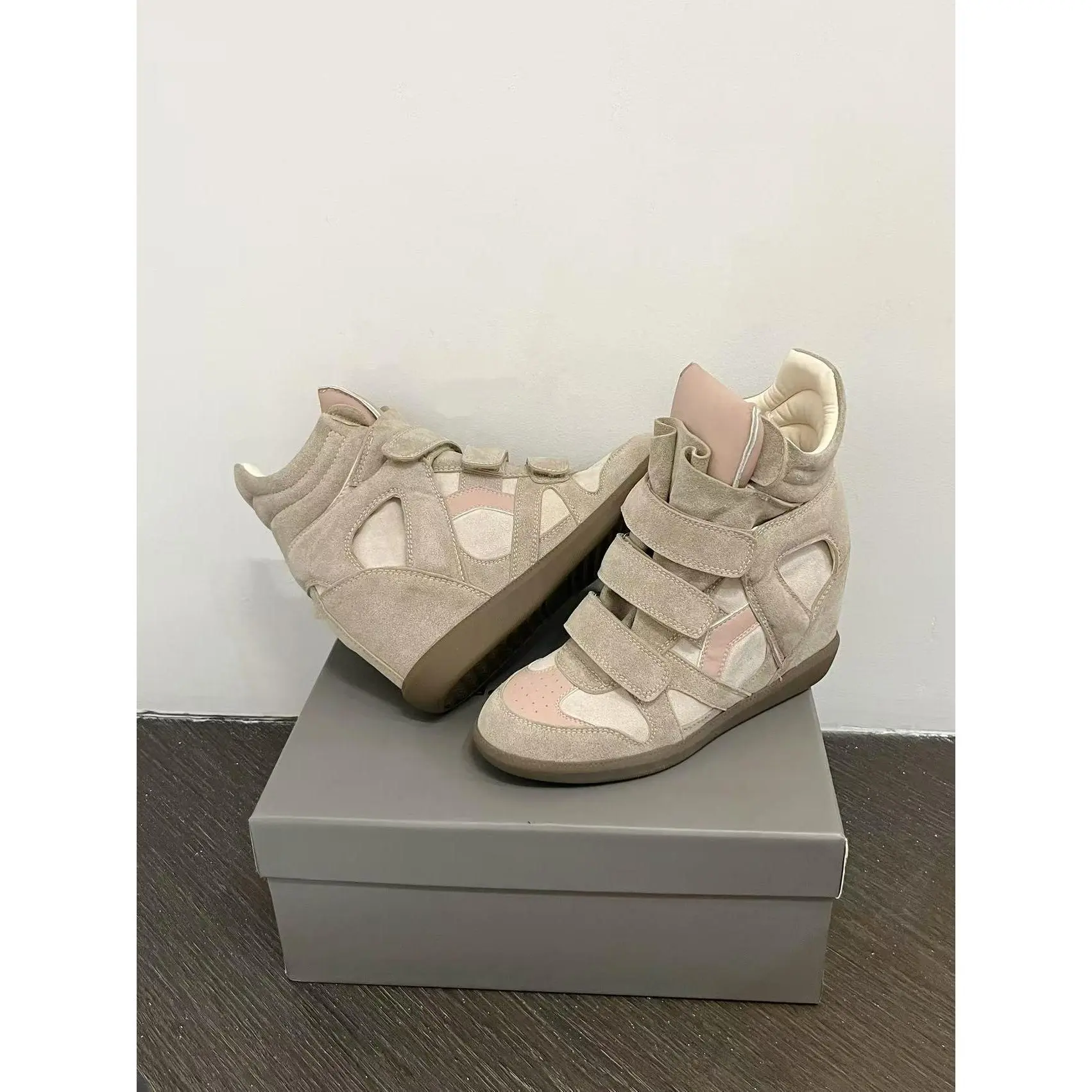 Velcro invisible inner heightening women's shoes 8CM slope heel color matching sports and leisure shoes high top shoes