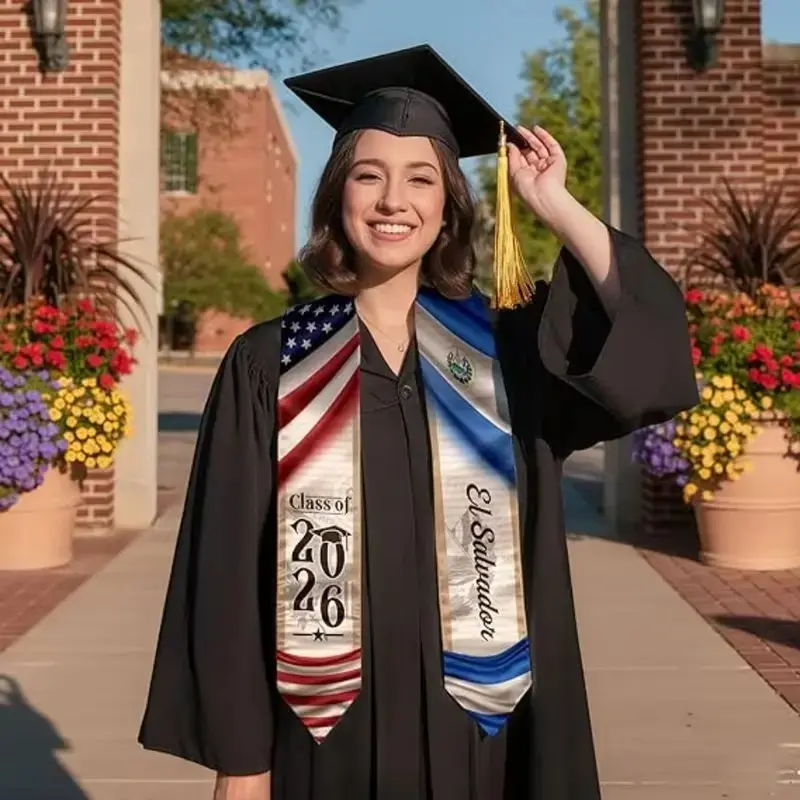 5. Class of 2026 Graduation Stole - USA & El Salvador Flag Sash, Senior Graduation Scarf, Grad Gift, Custom Graduation Accessories, Graduation Stole