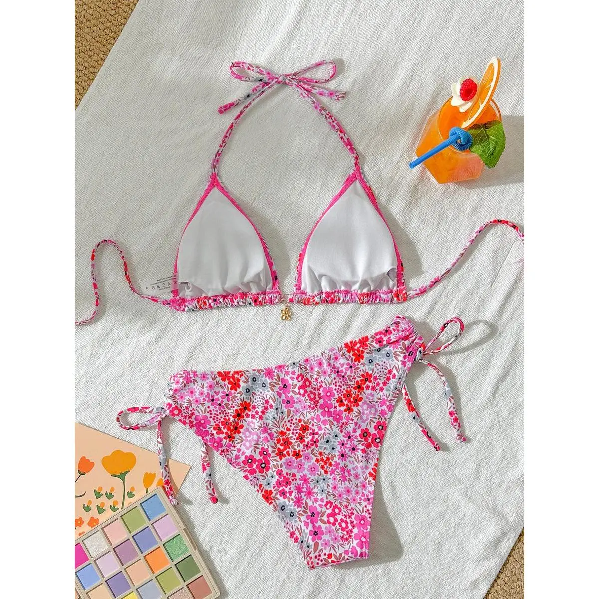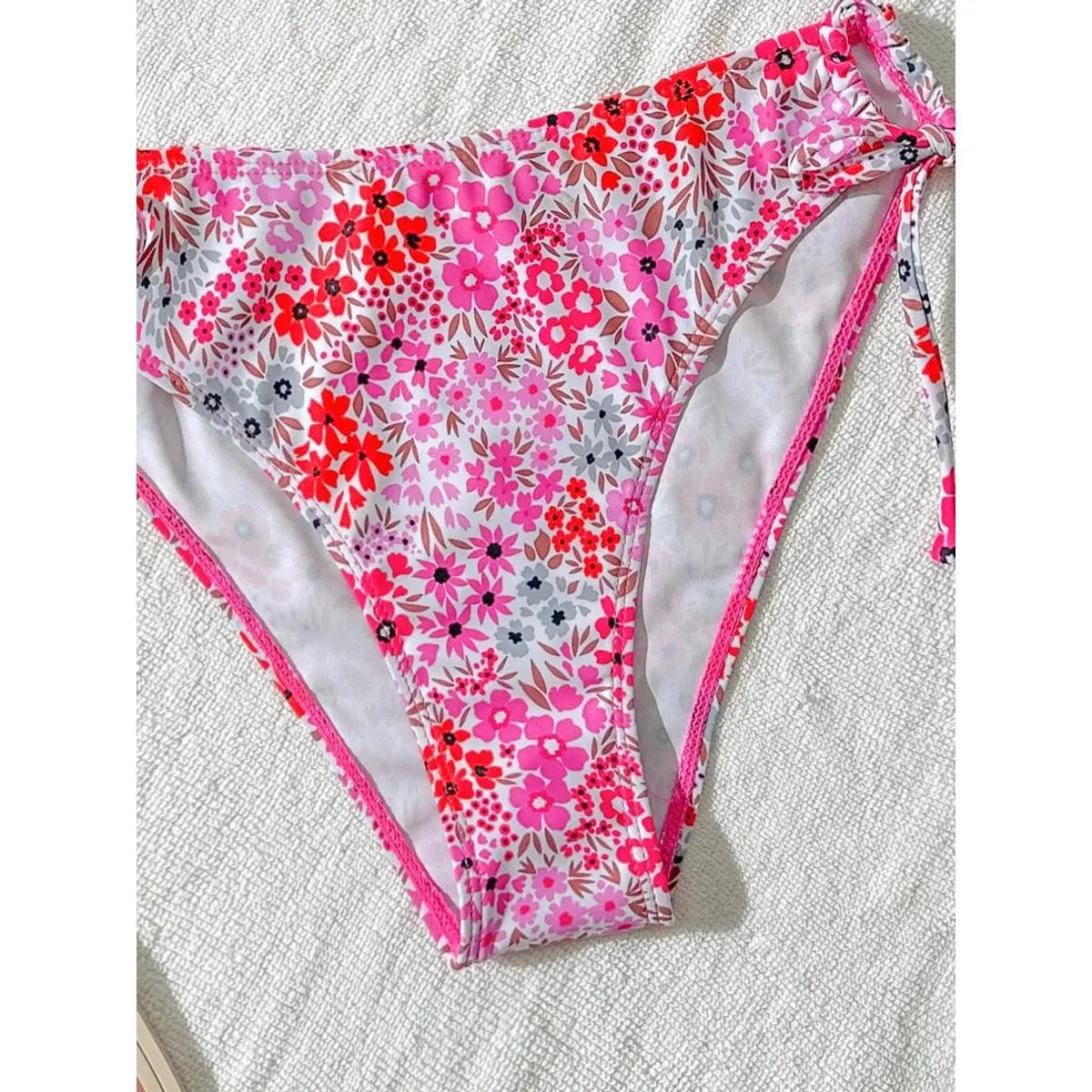 Women's High Waist Bikini Set, Floral Bikini Top, Thin Strap Floral Design, Two-Piece Swimsuit, Perfect for Beach Vacation and Summer Casual Wear