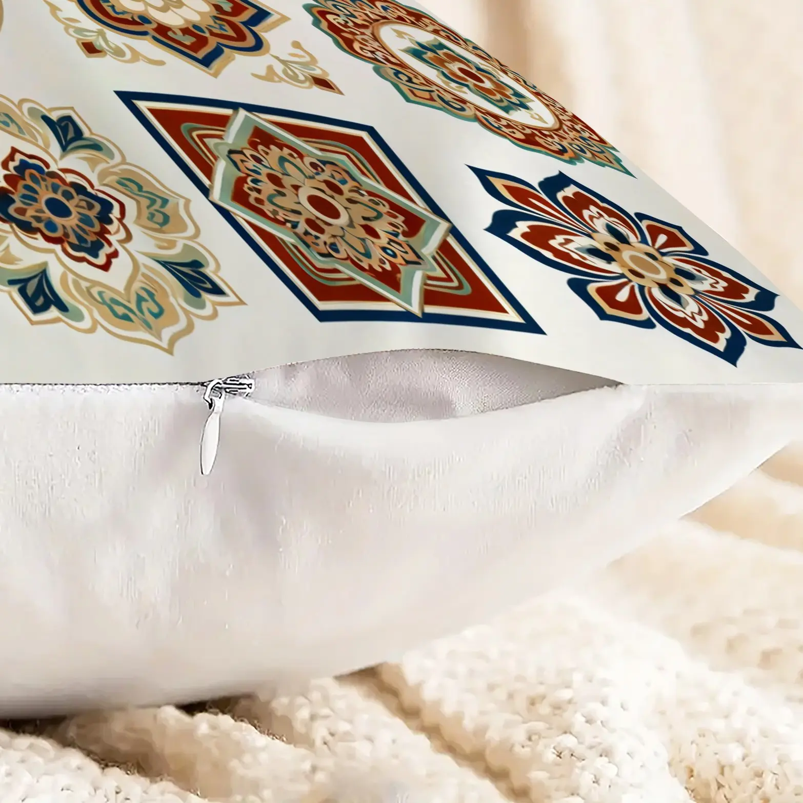 5. 1 Pack 18×18 Inch Boho Mandala Throw Pillow, Vintage Floral Accent Cushion, HD Digital Print Decorative Pillow, Non-Fade Home Decor Pillow for Sofa, Bed, Living Room, Bedroom