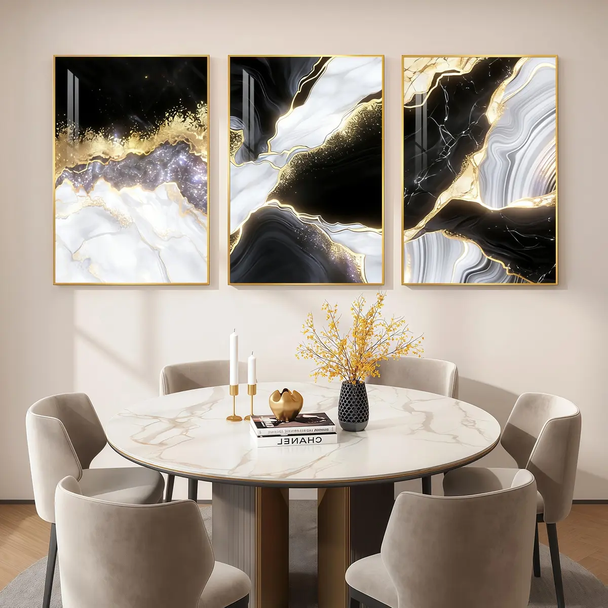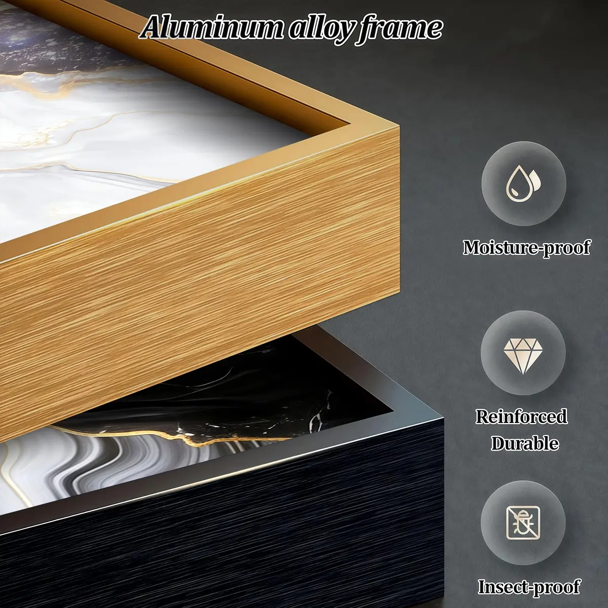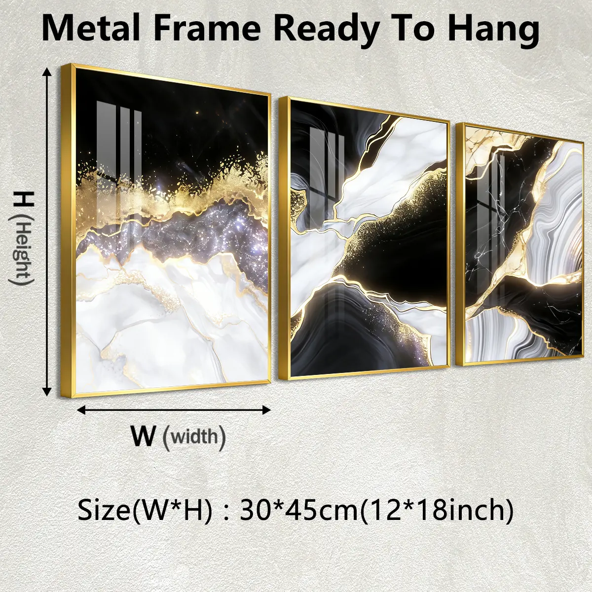 3 Counts Aluminum Alloy Framed Painting, Black White Gold Abstract Marble Art Pictures, Home Decoration For Living Room, Bedroom, Office, Restaurant, Hallway Wall Decor, Odorless Print Artwork, Luxury Perfect Gift For Friends And Family