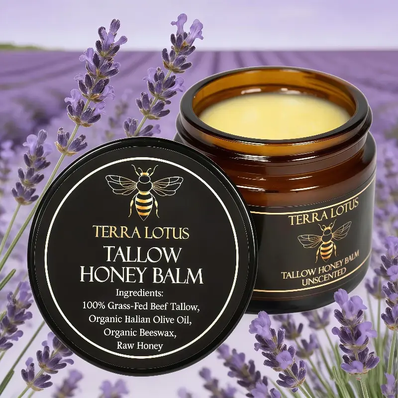 Terra Lotus Tallow Honey Balm Handcrafted All-Natural Moisturizer with Beef Tallow & Raw Honey for Soft Smooth Radiant Skin Care
