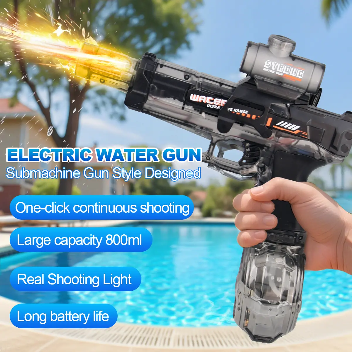Electric Water Gun,Squirt Gun withLED Light,Rechargeable BatteryPowered ,Large Capacity Tank,WaterBlaster28-32 Ft Range, for Outdoor Pool BeachBattle Playsummer outdoor pool partybackyard game
