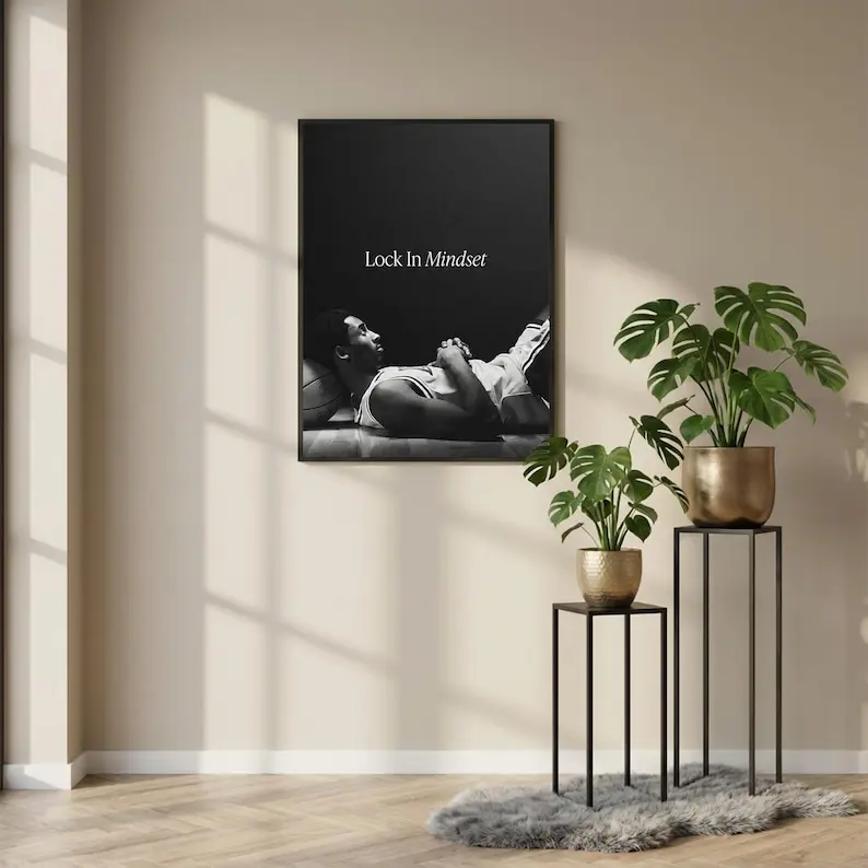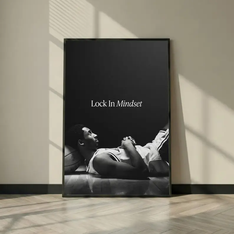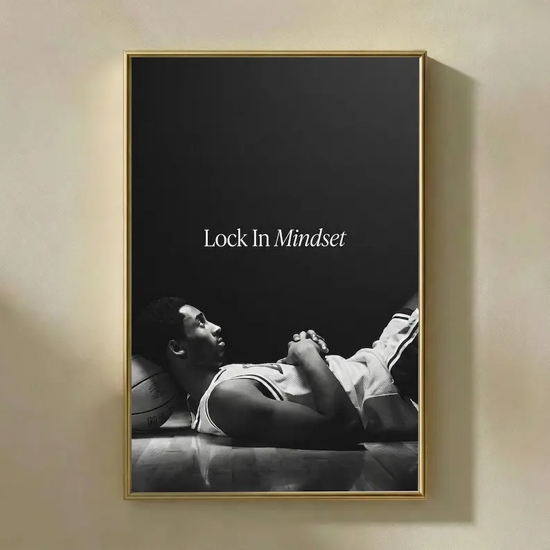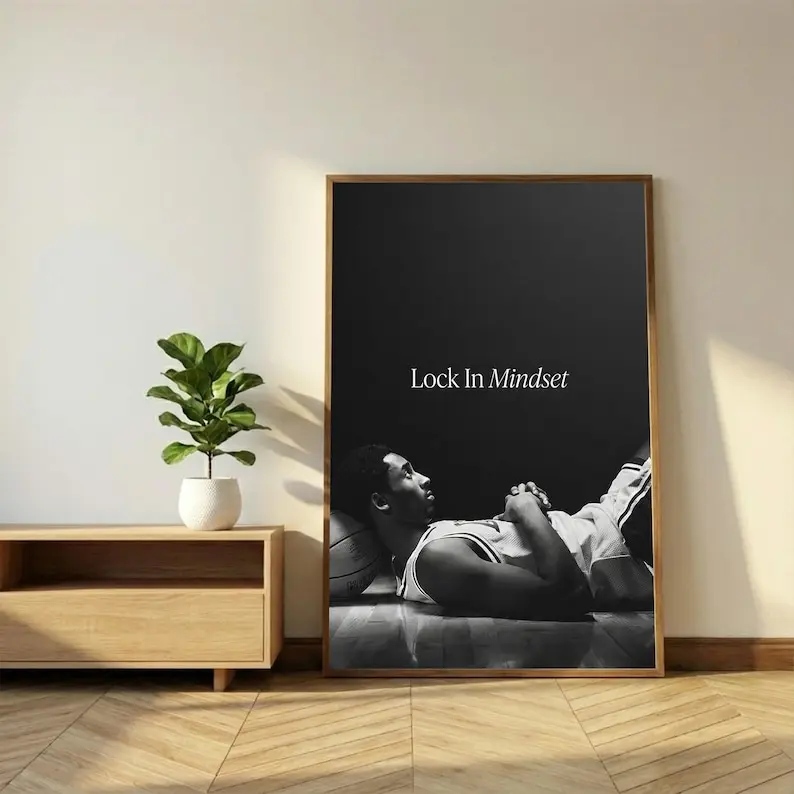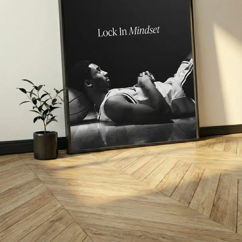 Kobe Bryant Lock In Mindset Poster, Basketball Motivation Wall Art, Black and White Athlete Print, Gym Focus Decor, Sports Office Poster