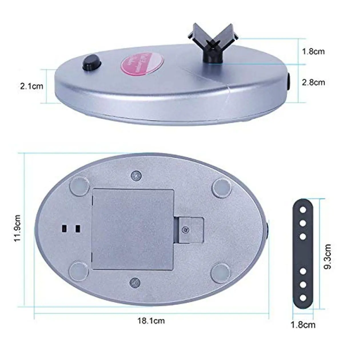 3 different sizes of adjustable and detachable rubbery straps adjust according to the bottle's size. It can shake the bottle to the sides, left and right, and shake every shape and type of bottle.