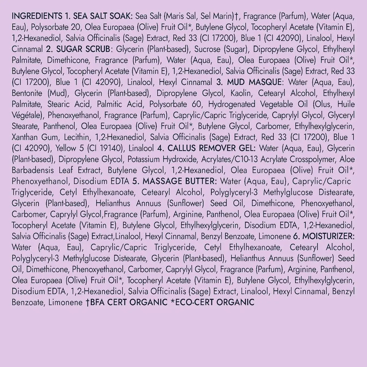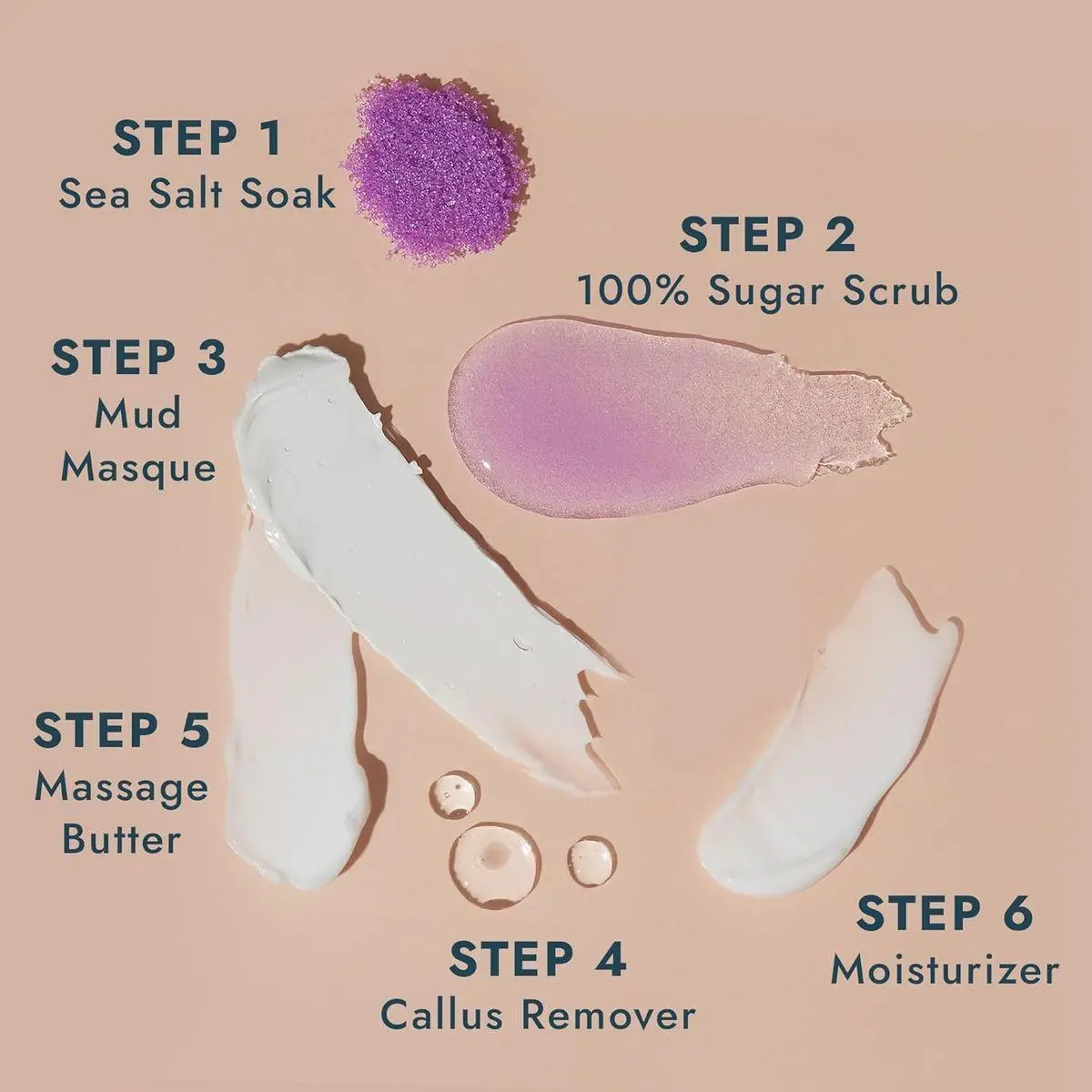 6 Easy Steps to Perfect Pedicures. Our Pedi in a Box Ultimate 6 Step is easy to use, with 6 steps that are simple to follow. Each clean, hygienic pedicure kit includes a salt soak, sugar scrub, mud masque, callus remover, massage butter, and moisturizer. This is the perfect way to get professional results from the comfort of your own home!