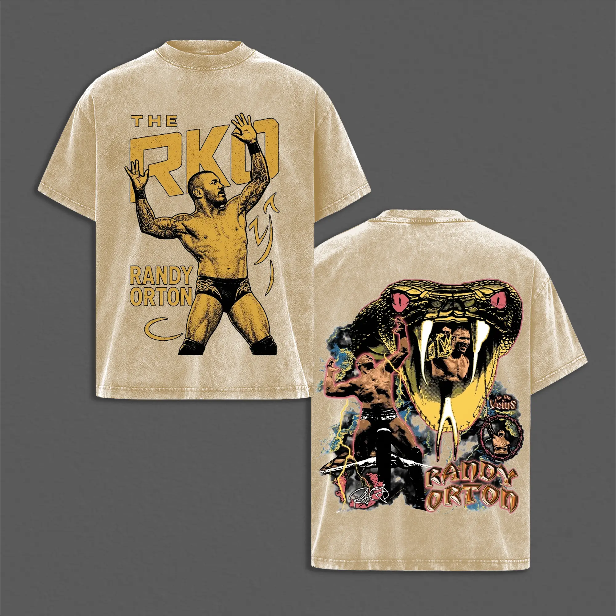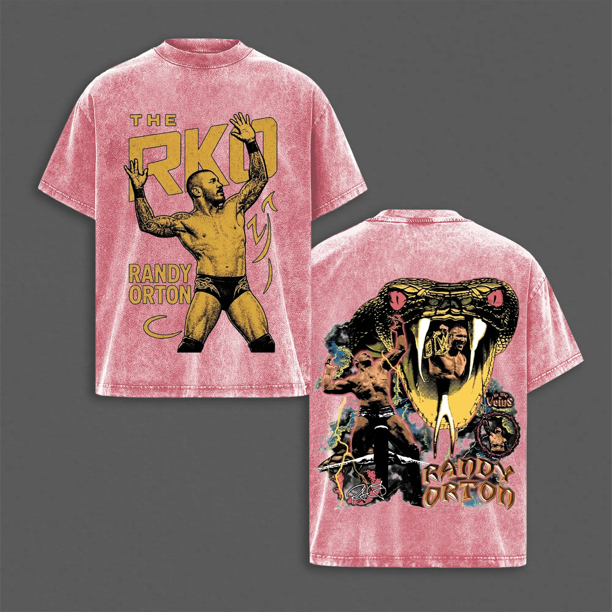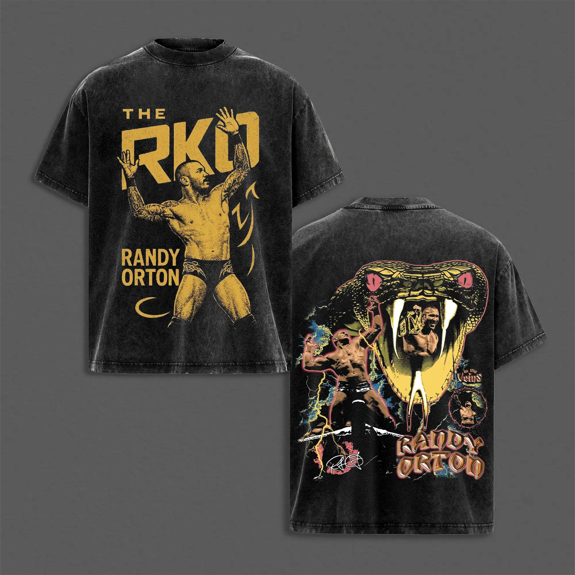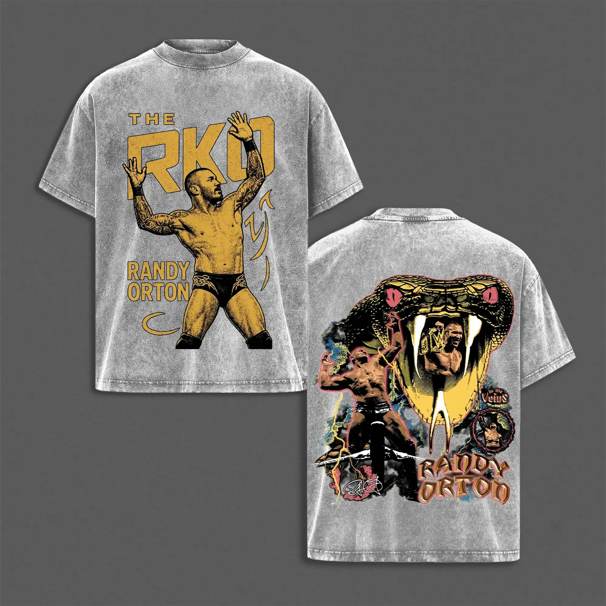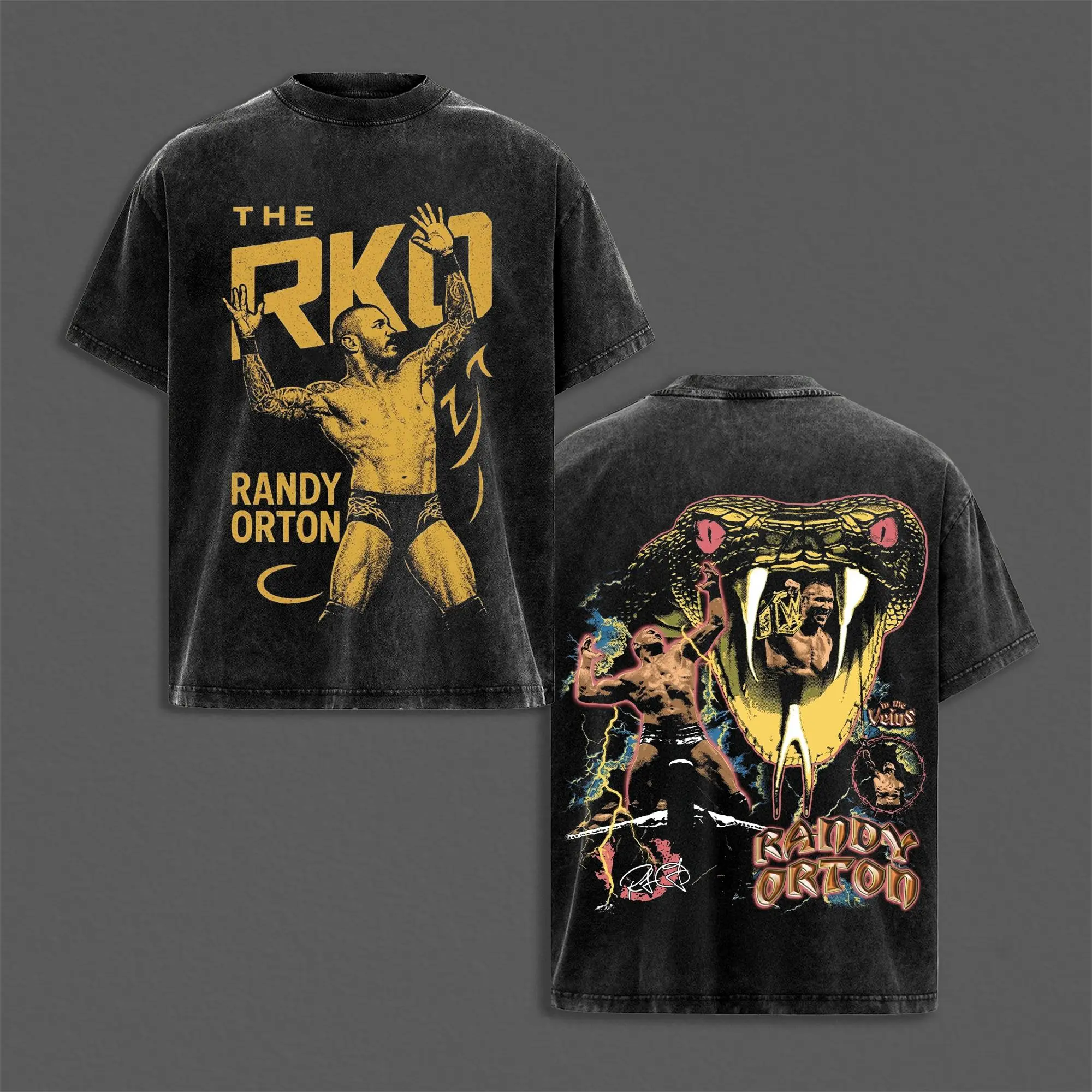 Retro RKO Randy Orton Inspired Washed Tee, WrestleMania Grunge Attitude Heavyweight Cotton Shirt, WWE Attitude Era Streetwear Top for Bold Festival Looks, Gift for Fans