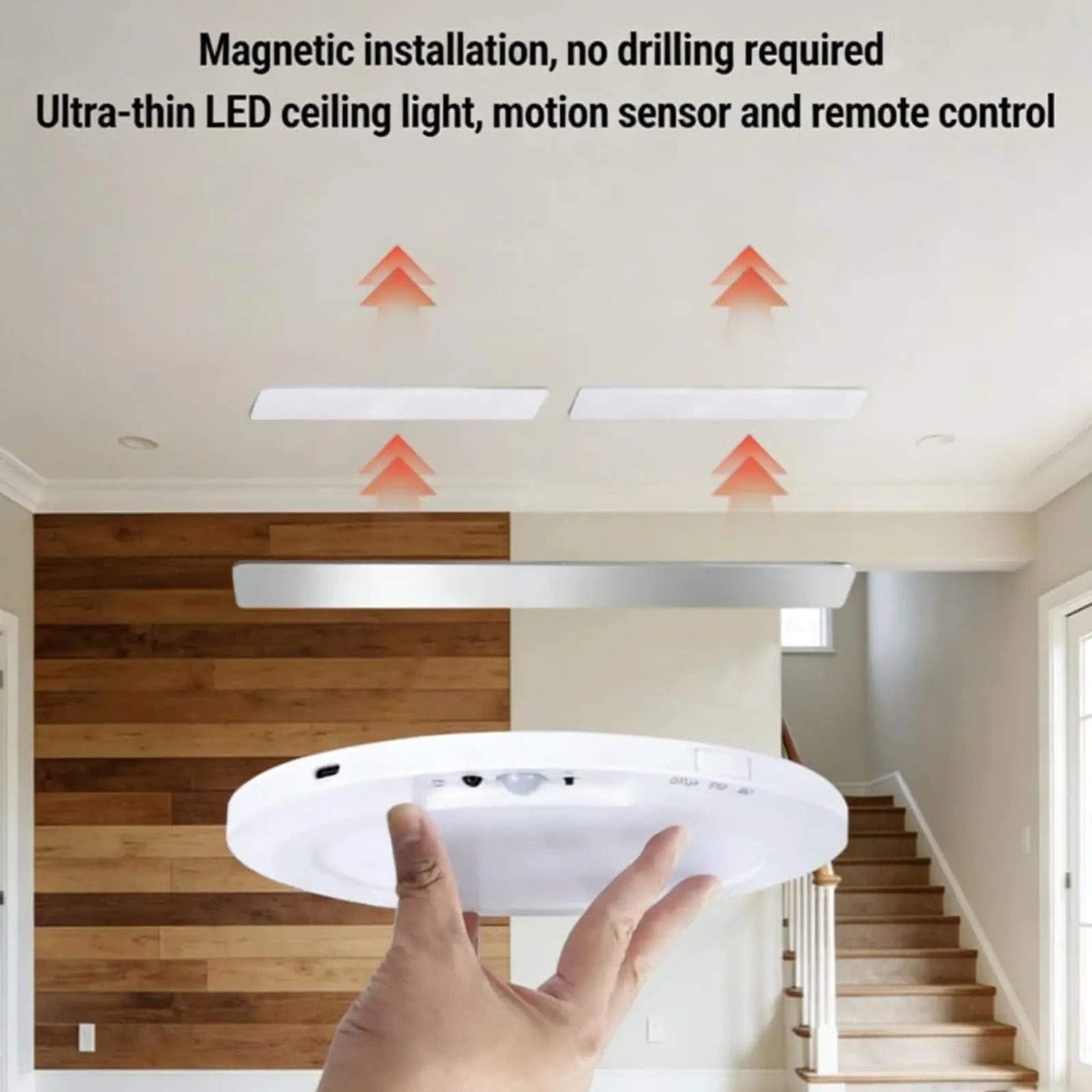 Rechargeable Ceiling Light with Remote, Motion Sensor Ceiling Light Magnetic Battery Operated, 3 Color Temps Dimmable Battery Powered Closet Light for Hallway Stairs Shed Garage, No Wiring