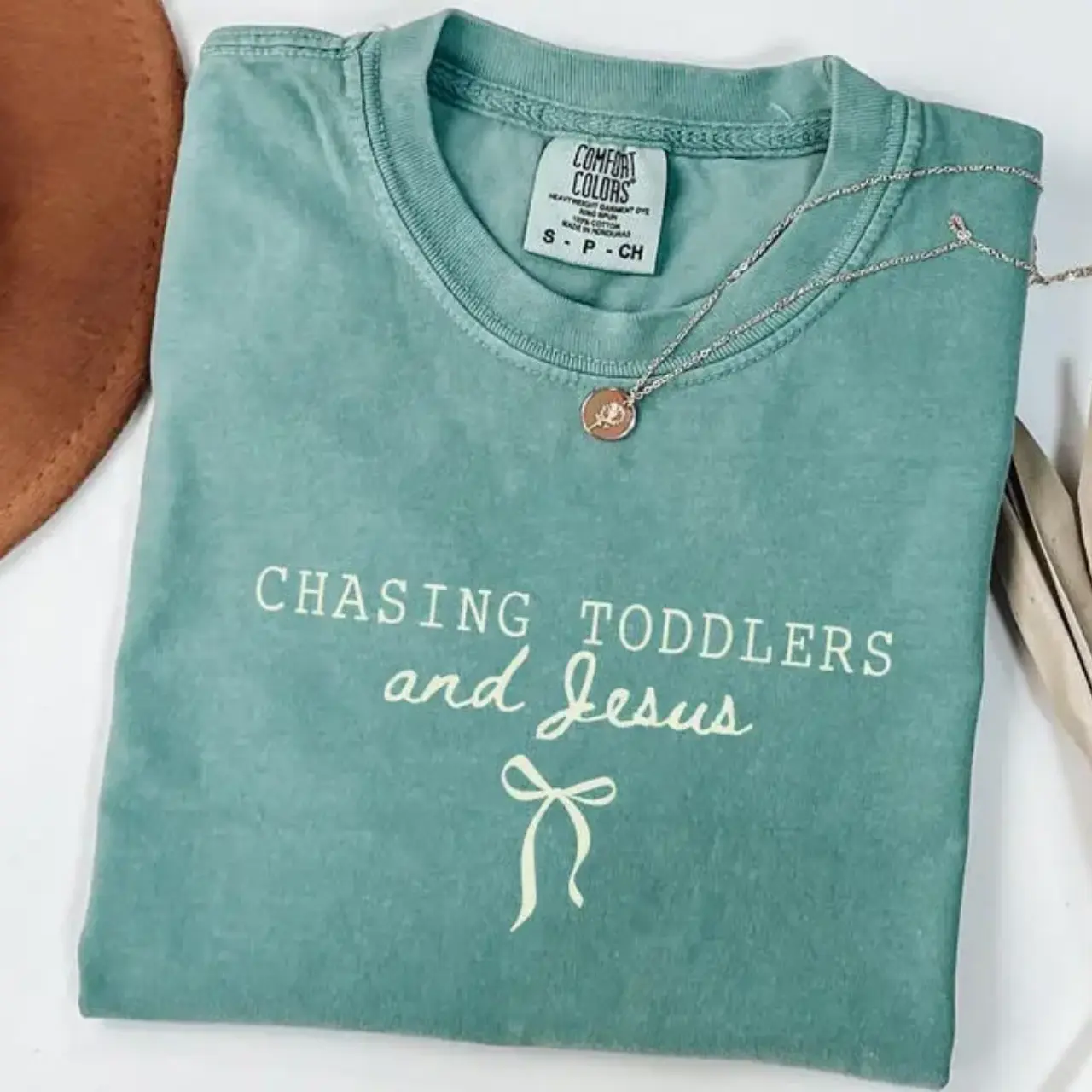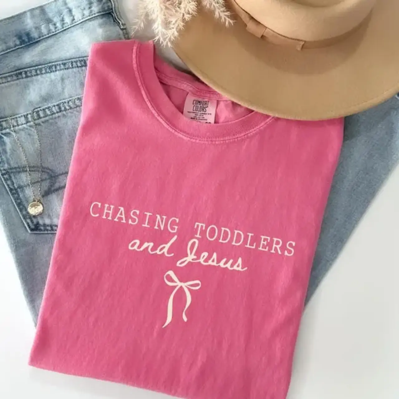 Chasing Jesus and Toddlers Coquette Comfort Colors T-Shirt - Christian Teacher T-Shirt, Aesthetic Faith Based Bow Tee, Christian Mom Gift, Beachy Tee,Teacher Tee