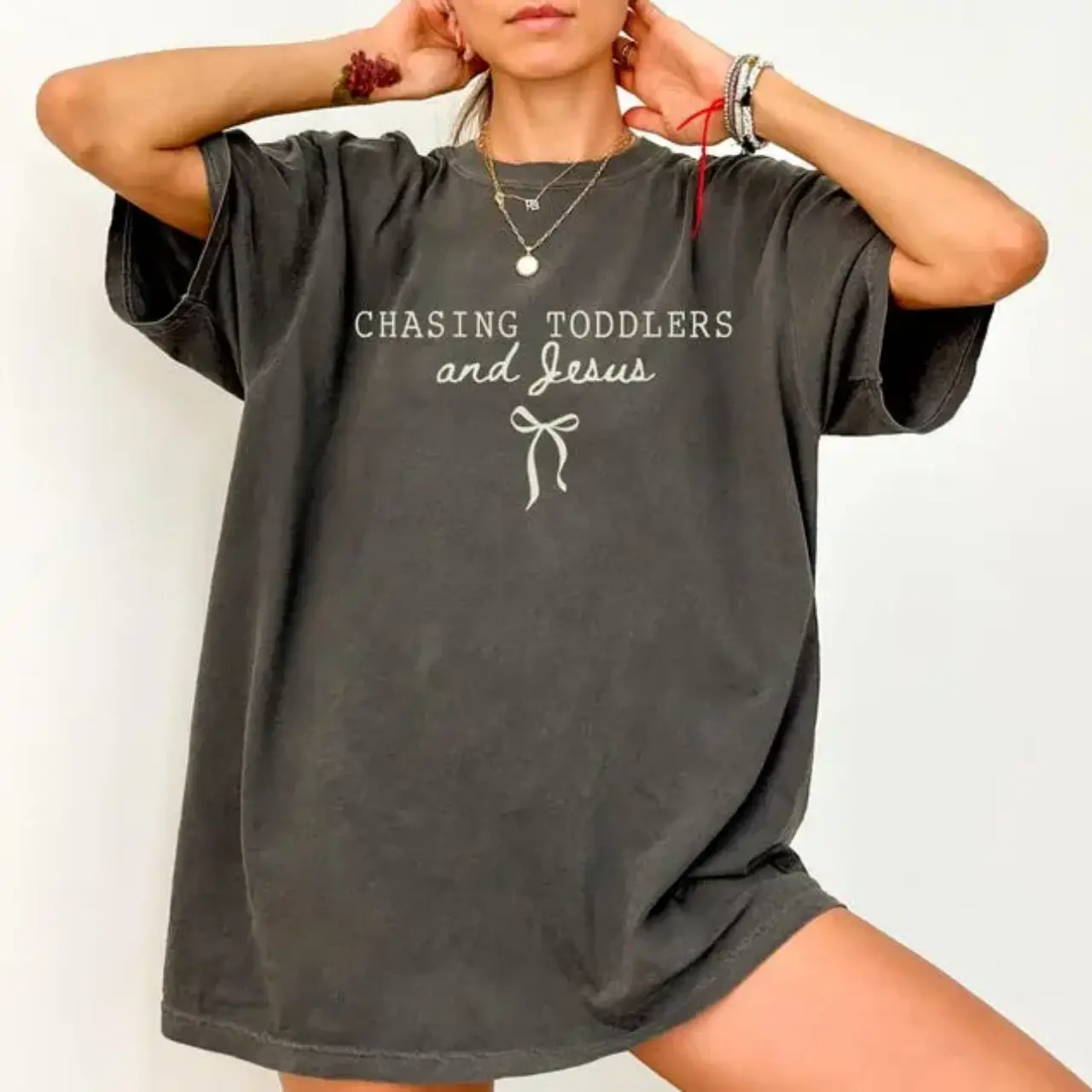 5. Chasing Jesus and Toddlers Coquette Comfort Colors T-Shirt - Christian Teacher T-Shirt, Aesthetic Faith Based Bow Tee, Christian Mom Gift, Beachy Tee,Teacher Tee