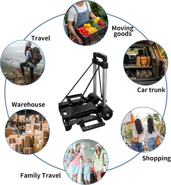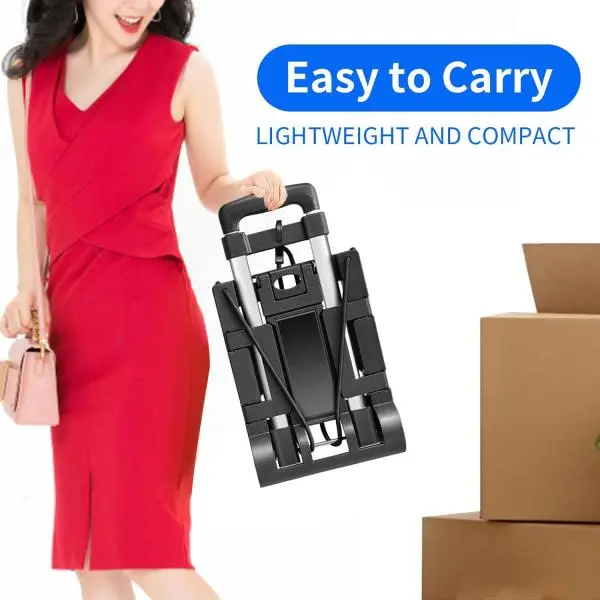 This foldable hand trolley is ultra-portable and foldable, taking up minimal space. Ideal for apartments, cars, or travel, it folds flat in seconds. The lightweight aluminum frame supports up to 150 lbs, ensuring durability without bulk. Perfect for busy households and travelers.