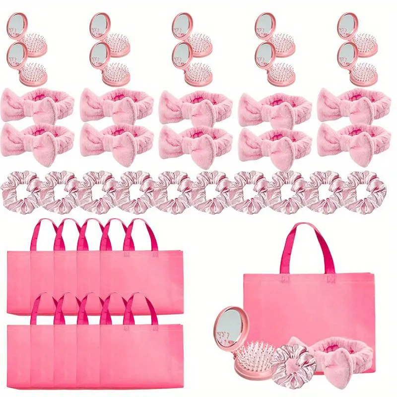 40pcs Sleepover Party Essentials Kit Includes Pink Comb Headband Satin Headband And Gift Bag Perfect For Spa Birthday Parties teen girls push gifts care package for Wedding Valentine Party Gift mothersdaygift