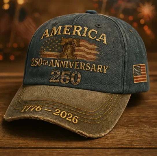 ·Historic Patriotic Design: Exquisitely embroidered with "AMERICA", "250TH ANNIVERSARY", "1776-2026", the U.S. flag, and the iconic Liberty Bell, plus a mini American flag patch on the side. A bold, meaningful design that honors 250 years of U.S. history.