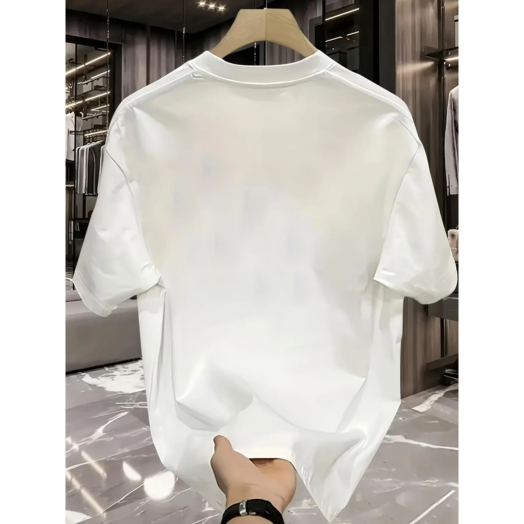 Men's Heavyweight T-Shirt - Breathable Short Sleeve Crew Neck, Classic Fit for Everyday Streetwear Outfits, Summer Wear, Bold Print, Opaque Fabric, Casual Style, Minimalist Design, Loose Fit, Trendy Urban Clothing