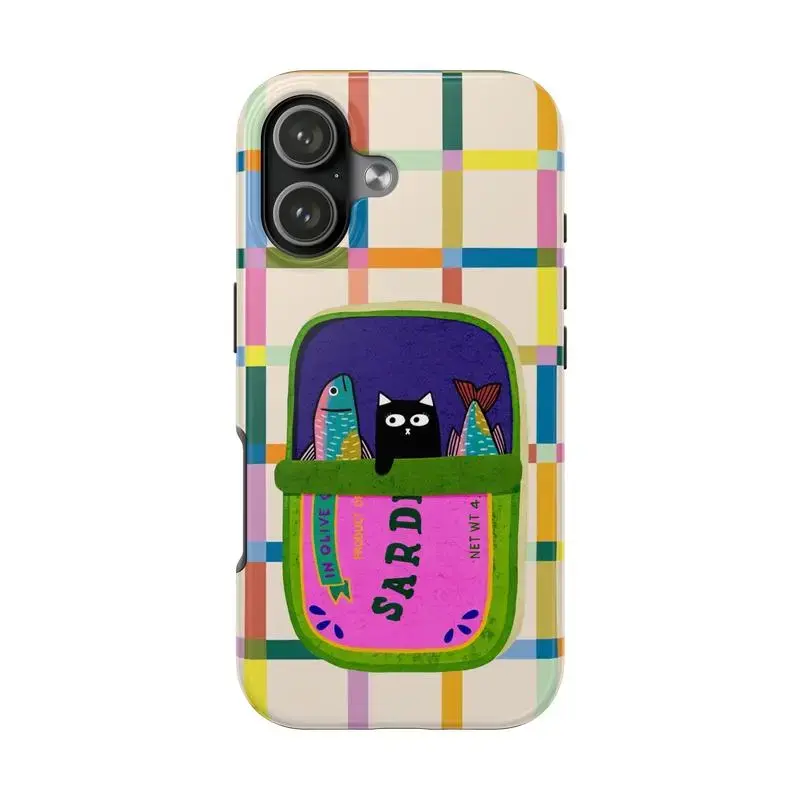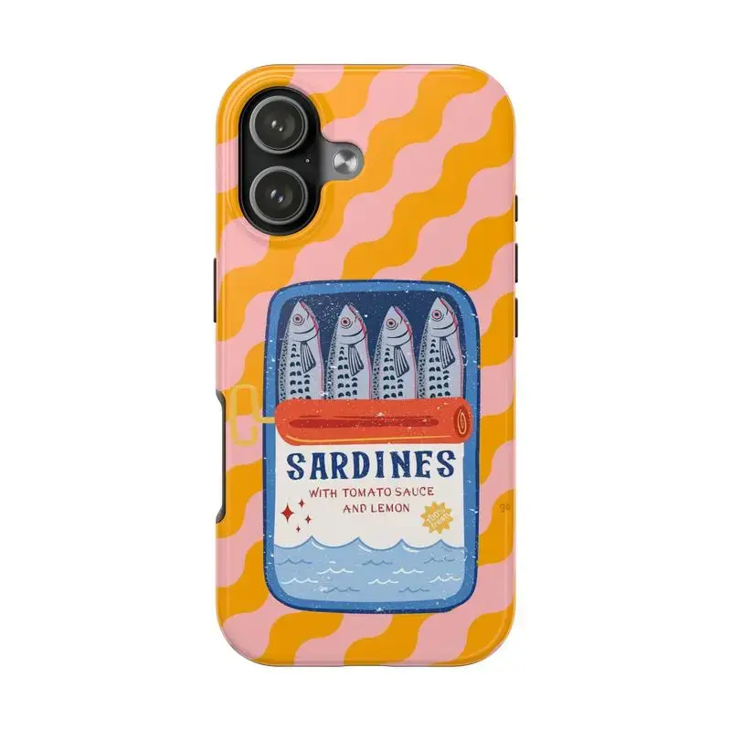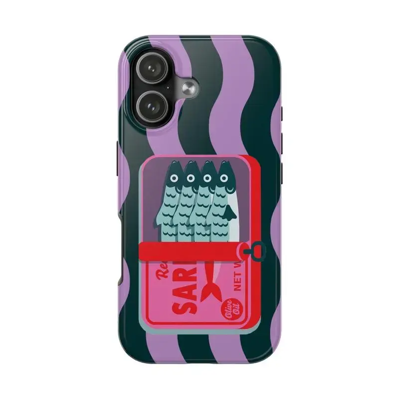 Retro Sardine Can Phone Case, Retro Fish Tin Art Stripes Protective Cover, iPhone 17 16 15 14 13 12 11 Pro Max