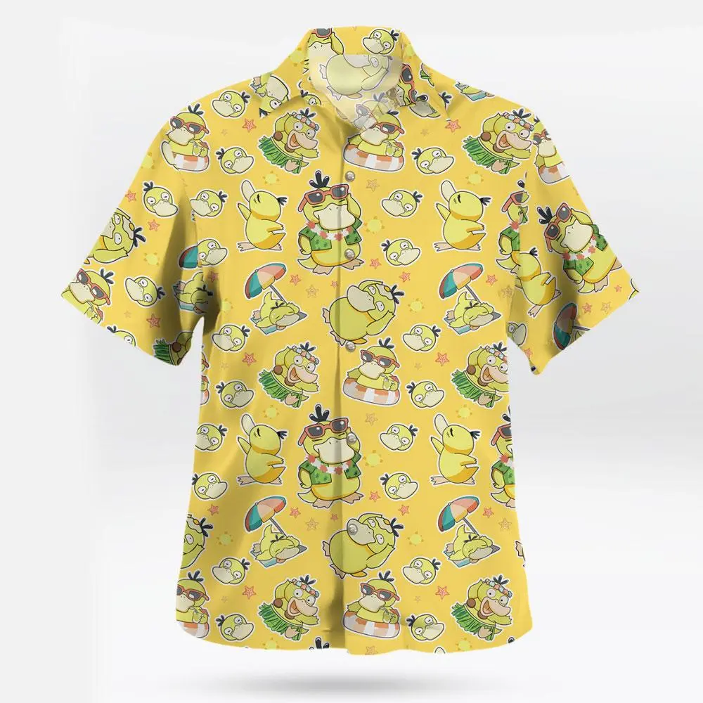 Psyduck Hawaiian Shirt – Funny P0kem0n Summer Aloha Shirt, Anime Hawaiian Shirt PKM Gift, Hawaiian Shirt for Unisex Funny, Breathable & Comfy Tropical Outfit, Perfect Gift for Him Her