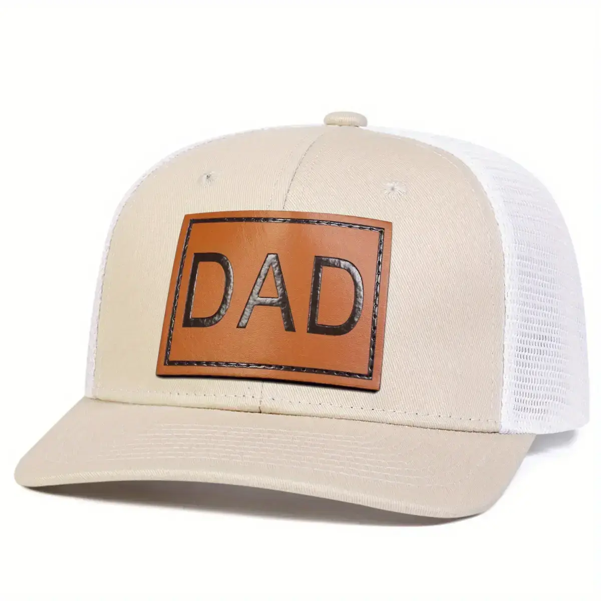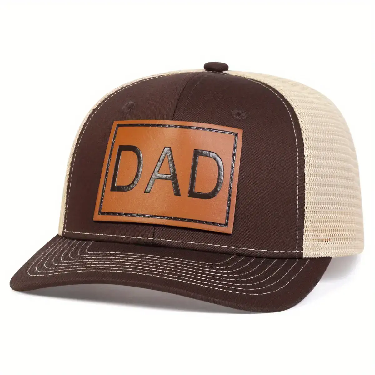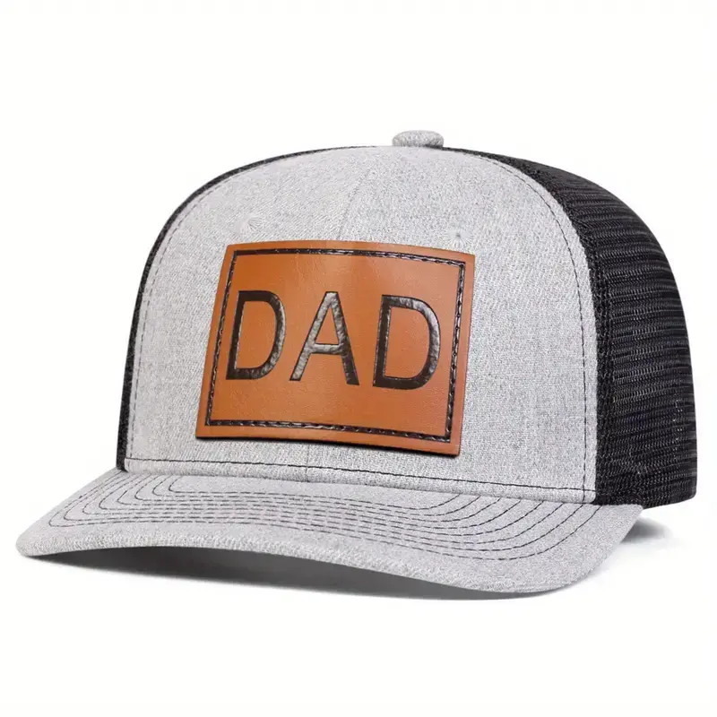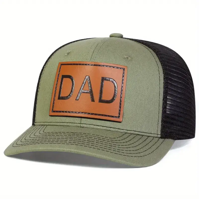 5. Unisex DAD Brown PU Leather Patch Hat Baseball Cap Mesh Hat Outdoor Sport Adjustable Sunscreen Leisure Hat Spring Autumn Travel Tourism Beach Vacation