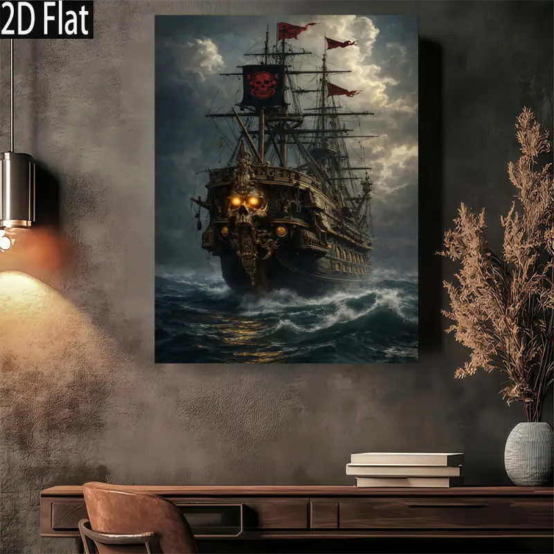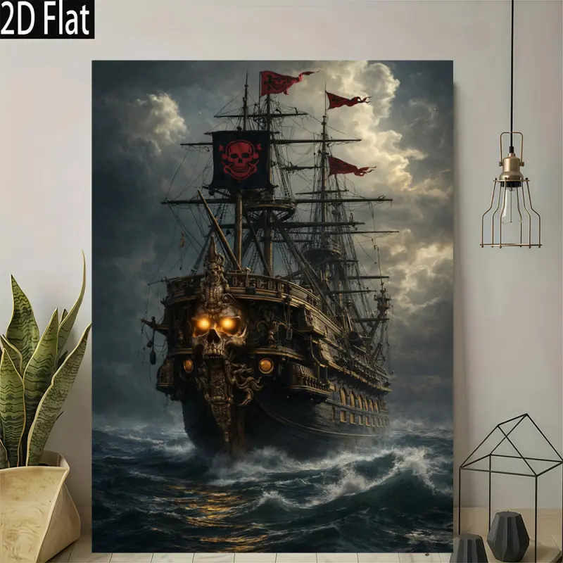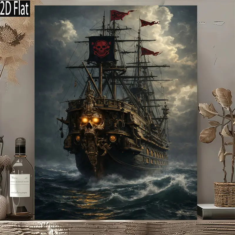 Pirate Skull Ship Canvas Prints, Room Decor  Art Poster, Vintage Nautical  Art Painting for Living Room Bedroom Office funny wall