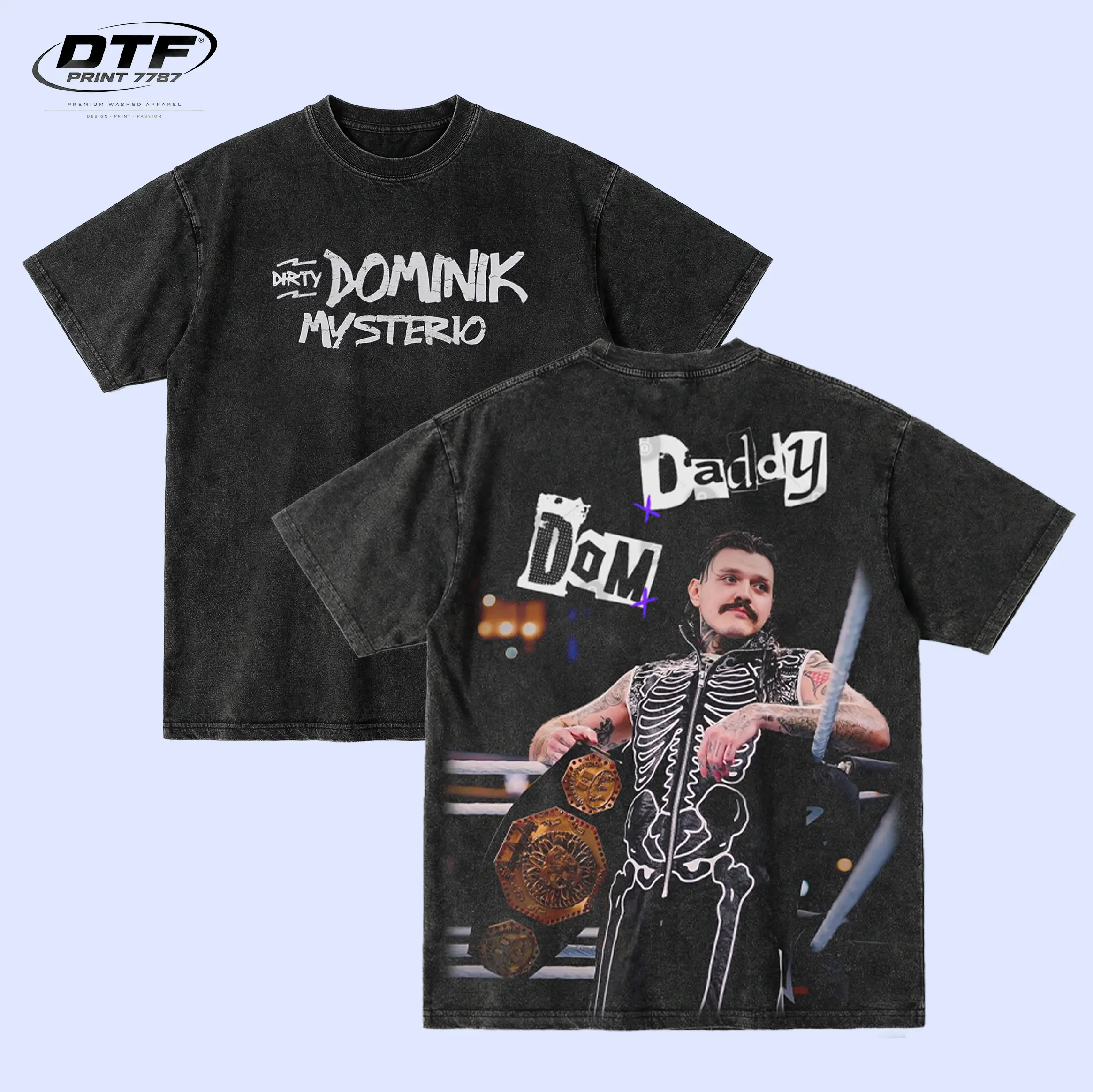 Dominik Mysterio WWE T-Shirt, Dirty Dom Daddy Dom Shirt, Vintage Washed WWE Graphic Tee, Retro Judgment Day Shirt, Double Sided Wrestling Tee, Gift for WWE Fans, Streetwear Oversized Washed Tee, WWE Event Outfit, Gift for Him, Dirty Dom Merch