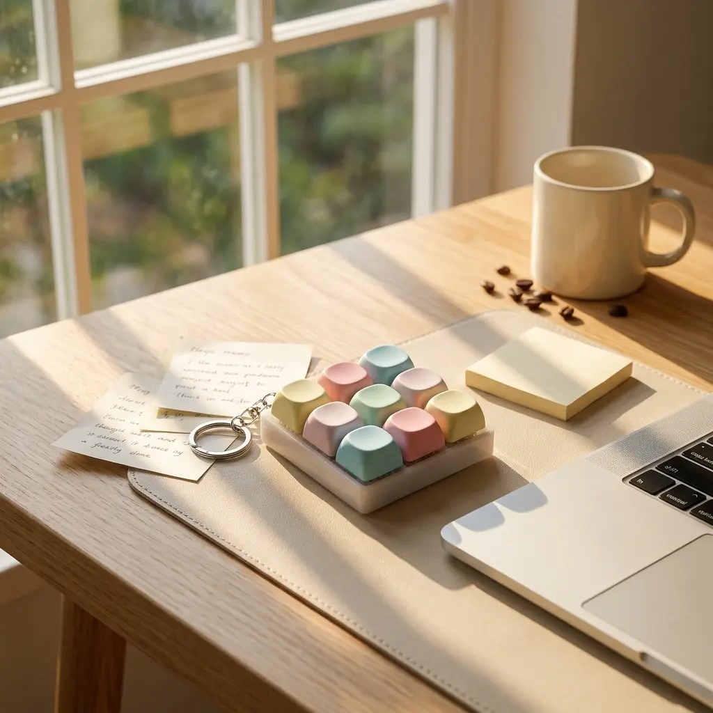 Portable Mechanical Keychain Fidget Toy – Colorful Silicone Keyboard Clicker, Durable Pocket Stress Relief Gadget for Adults & Women, Backpack Accessory with Tactile Button Decompression