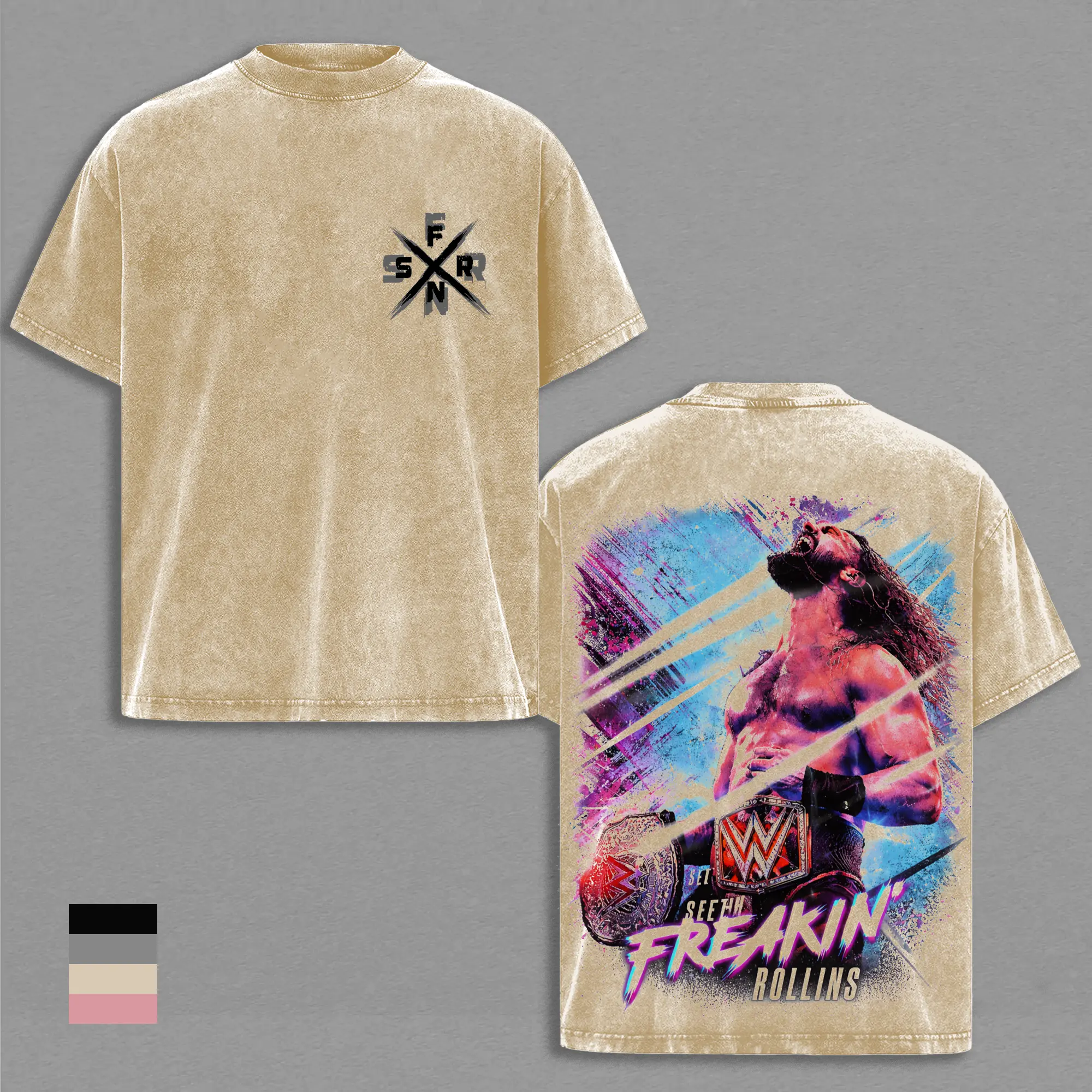 Seth Rollins WWE Shirt Vintage Washed Oversized T Shirt Visionary Graphic Tee Unisex Streetwear Wrestling Superstar Tee Pro Wrestling Fan Gift Retro WWE Shirt