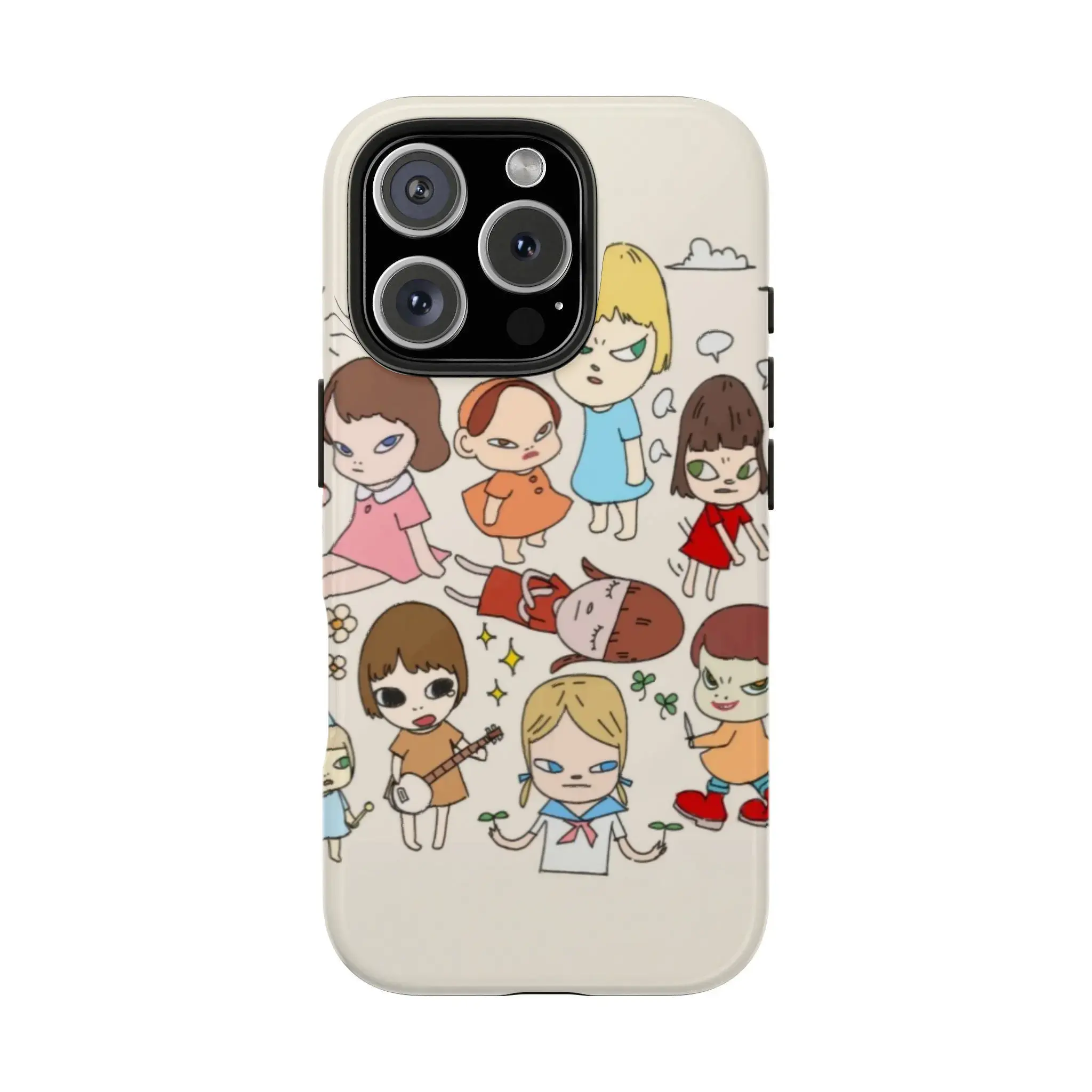 Yoshitomo Nara Art Phone Case Style1-4 For iPhone 17 ProMax Plus Air 16 15 14 13 12 11, Whimsical Pastel Floral Patchwork DesignKawaii Fruit Snail Ladybug Art, Best Gift