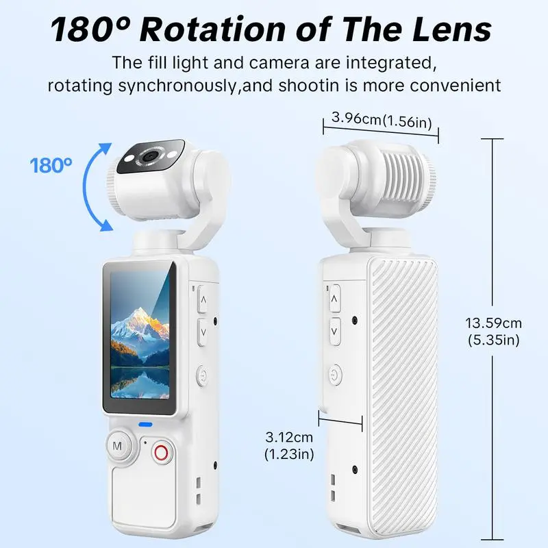 ·The flexible 180° rotatable lens enables easy selfie vlogging, POV shooting, and multi-angle recording without repositioning the camera, perfect for content creators on the go.