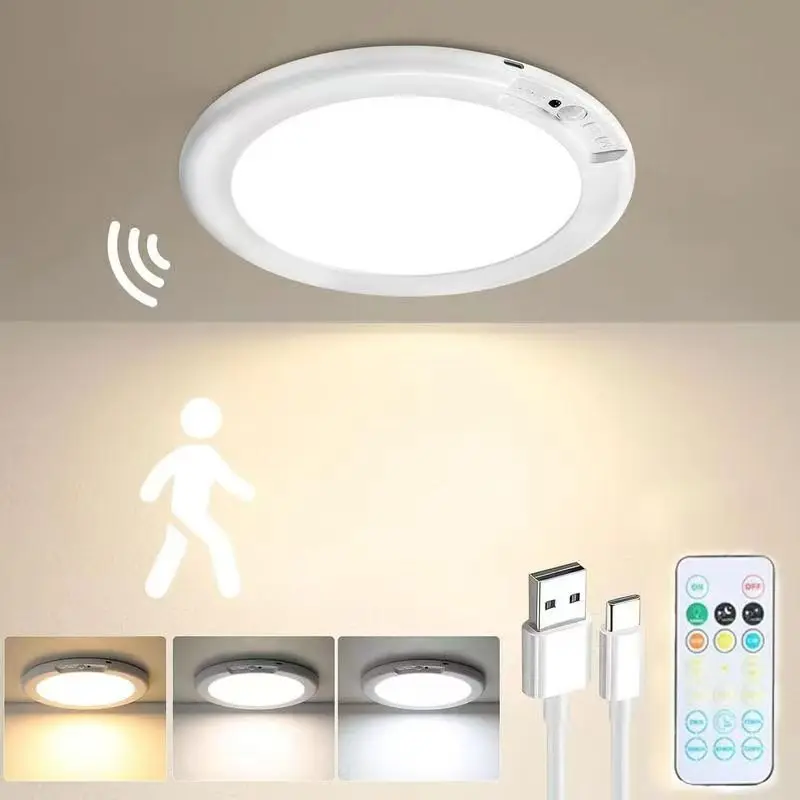 Rechargeable Motion Sensor Ceiling Light with Remote - Magnetic Wireless Ceiling Light Battery Powered for Closet Shower Stairs Shed Hallway Porch Patio ect,Suitable for various scenarios, easy to install.