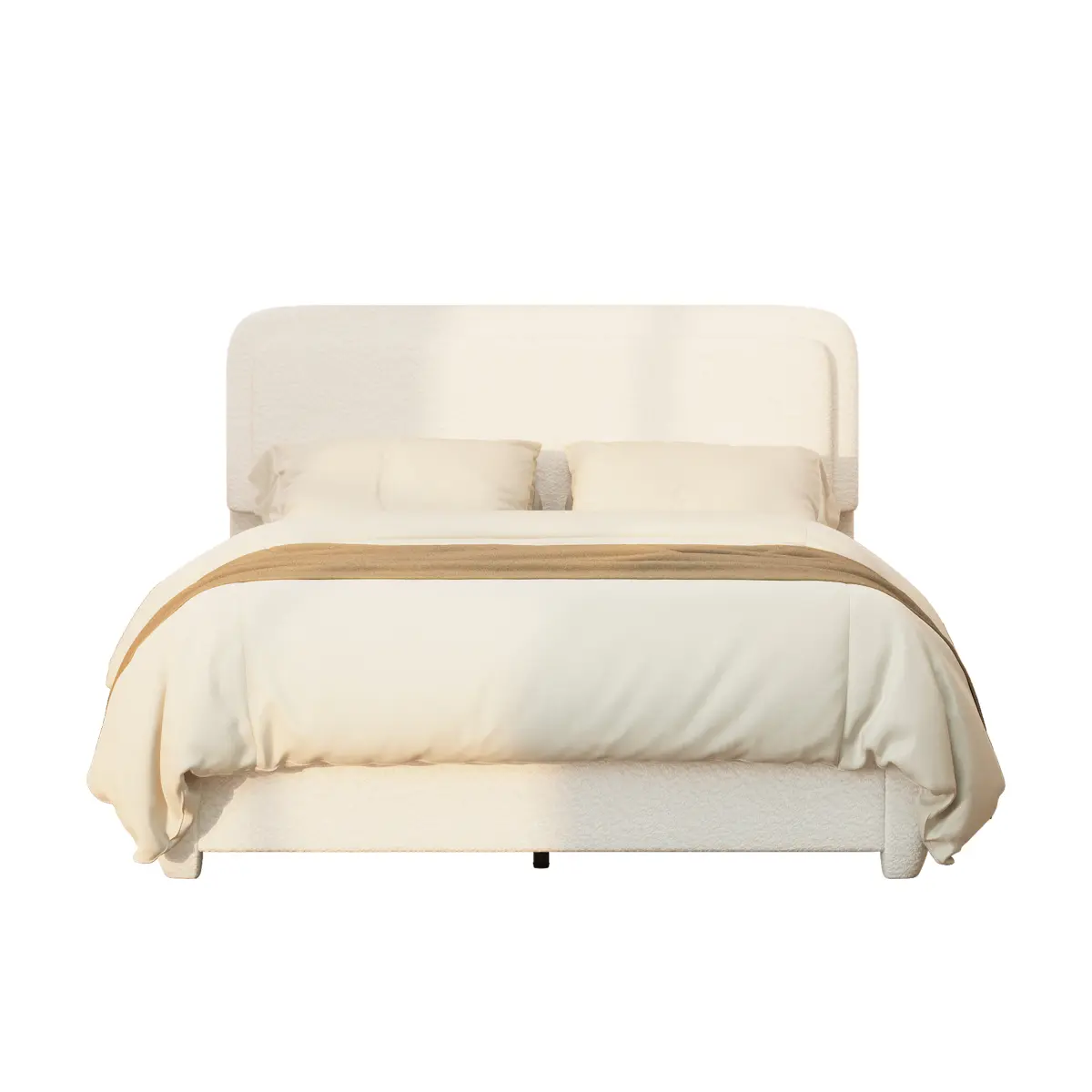 ·2.Luxurious Boucle Fabric Upholstery with Soft Texture: Upholstered in premium boucle fabric, this bed combines a cozy, soft touch with a sophisticated, contemporary look.The textured fabric enhances your bedroom decor, giving it a modern yet warm and inviting feel, while remaining durable and easy to maintain.