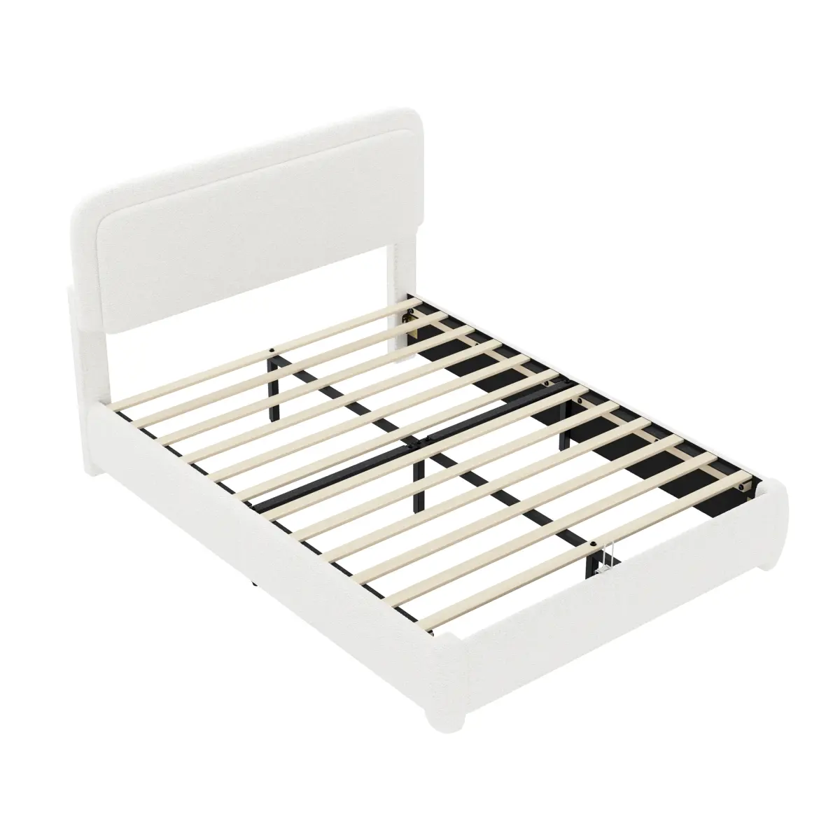 ·5.Easy Assembly with Modern, Stylish Appeal: This bed is designed for hassle-free assembly, with all parts and instructions included to make setup quick and straightforward.Its modern curved headboard, elegant boucle upholstery, and low-profile platform create a sophisticated, functional centerpiece suitable for master bedrooms, guest rooms, apartments, or small spaces.