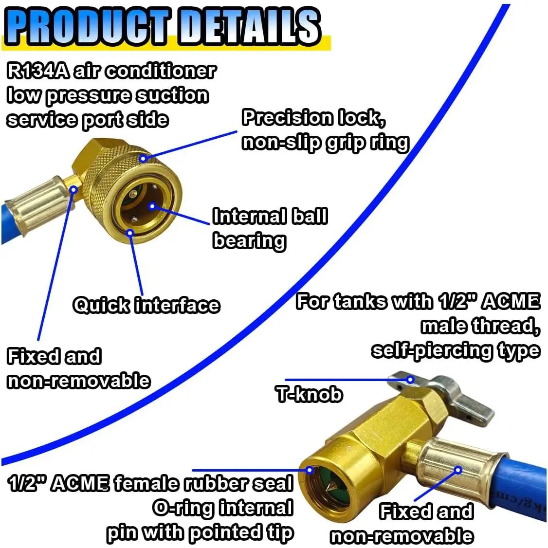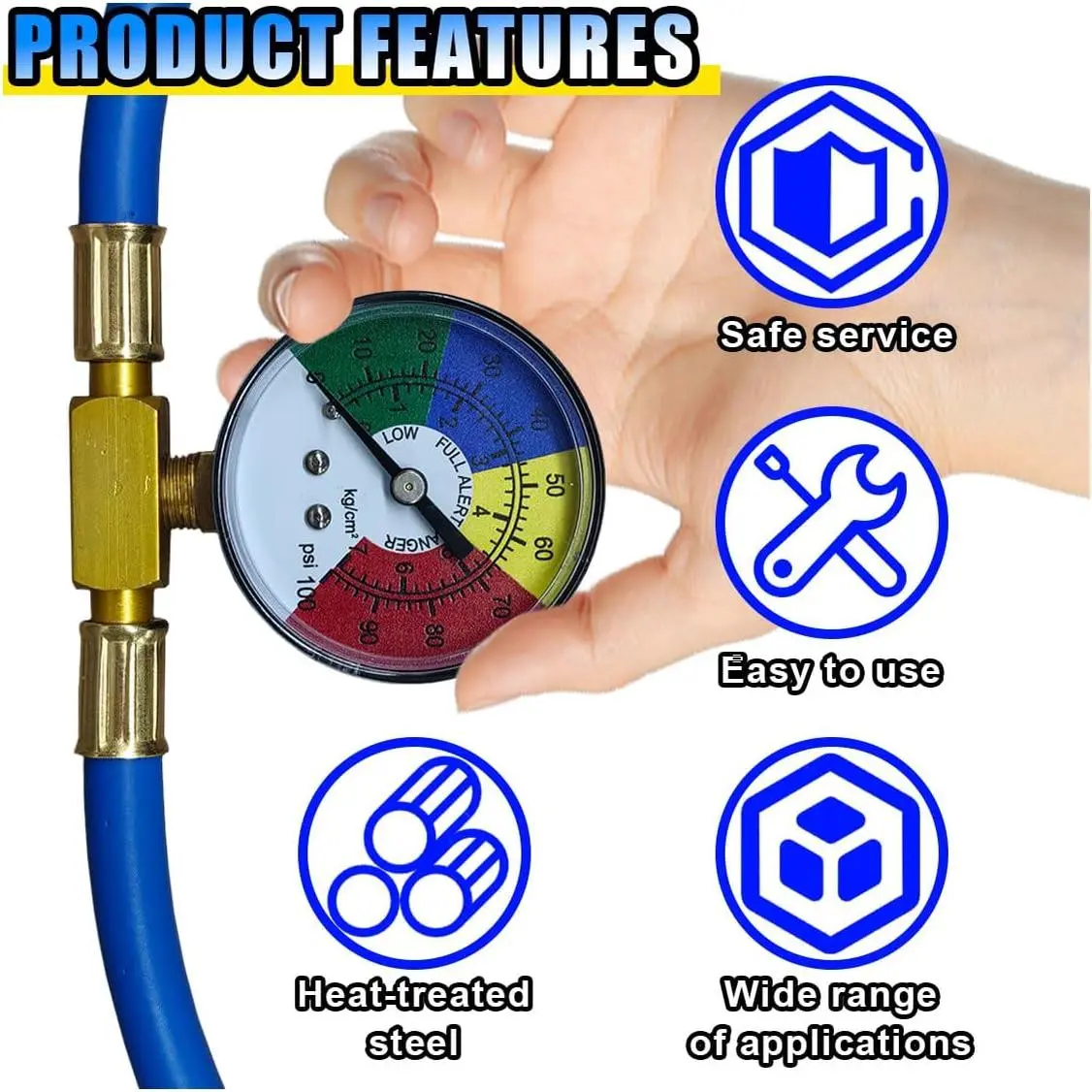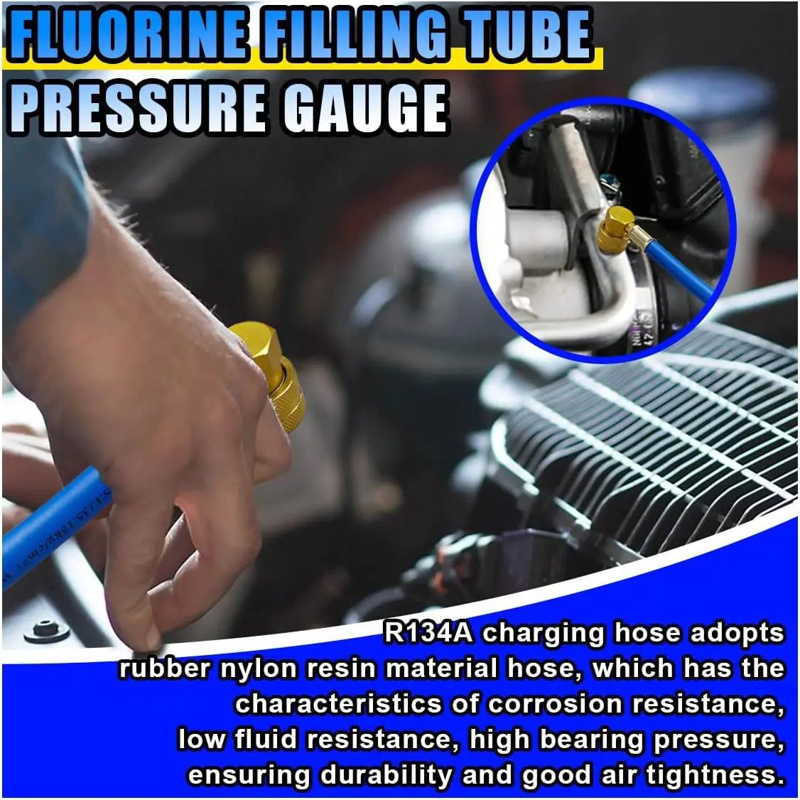 Car Refrigerant Charge Hose Kit, Car Air Conditioning Recharge Hose with Gauge for Measuring Can Tap & Quick Coupler for Refrigerant
